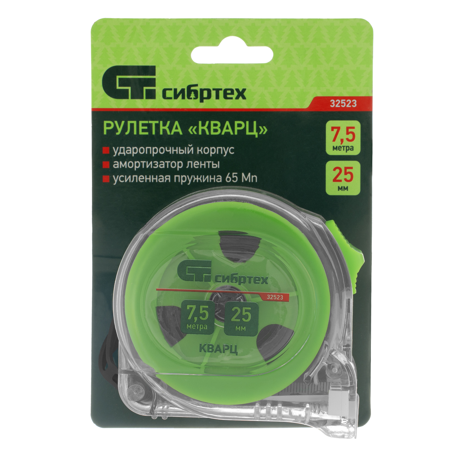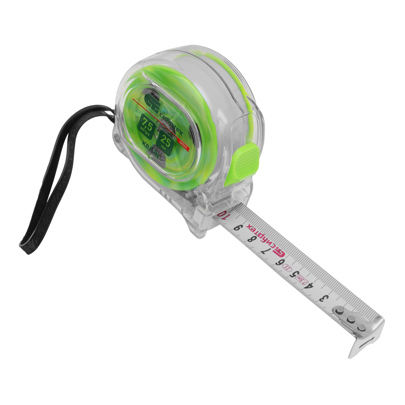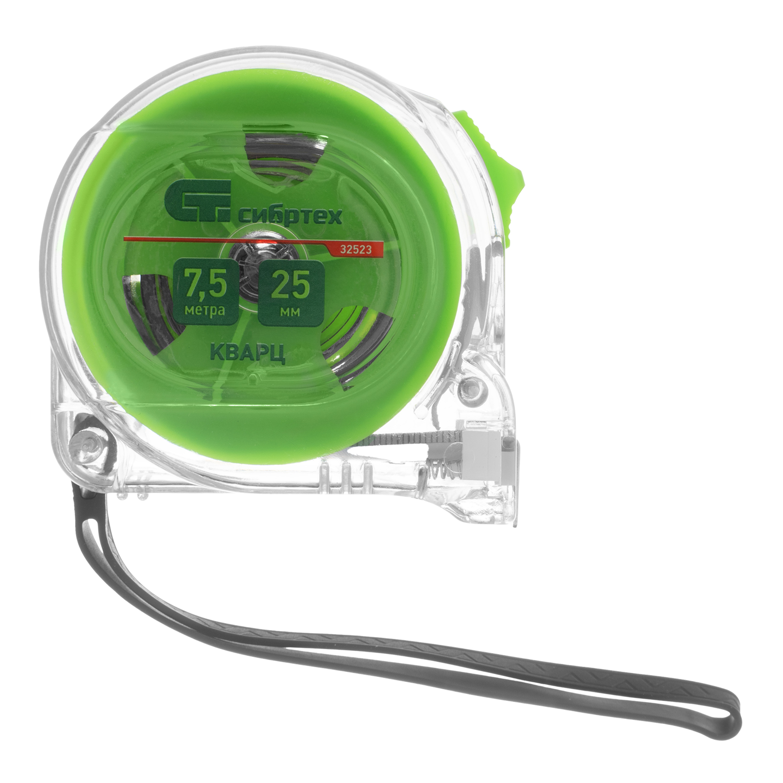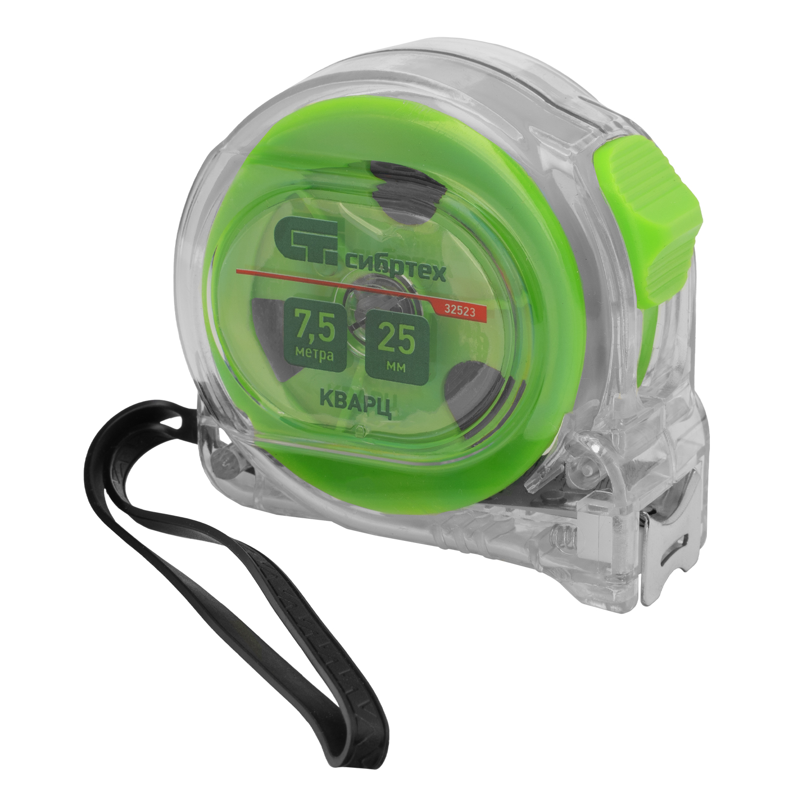 Рулетка Кварц,прозрачный корпус,амортизатор,7,5 м х 25 мм Сибртех в Москве
