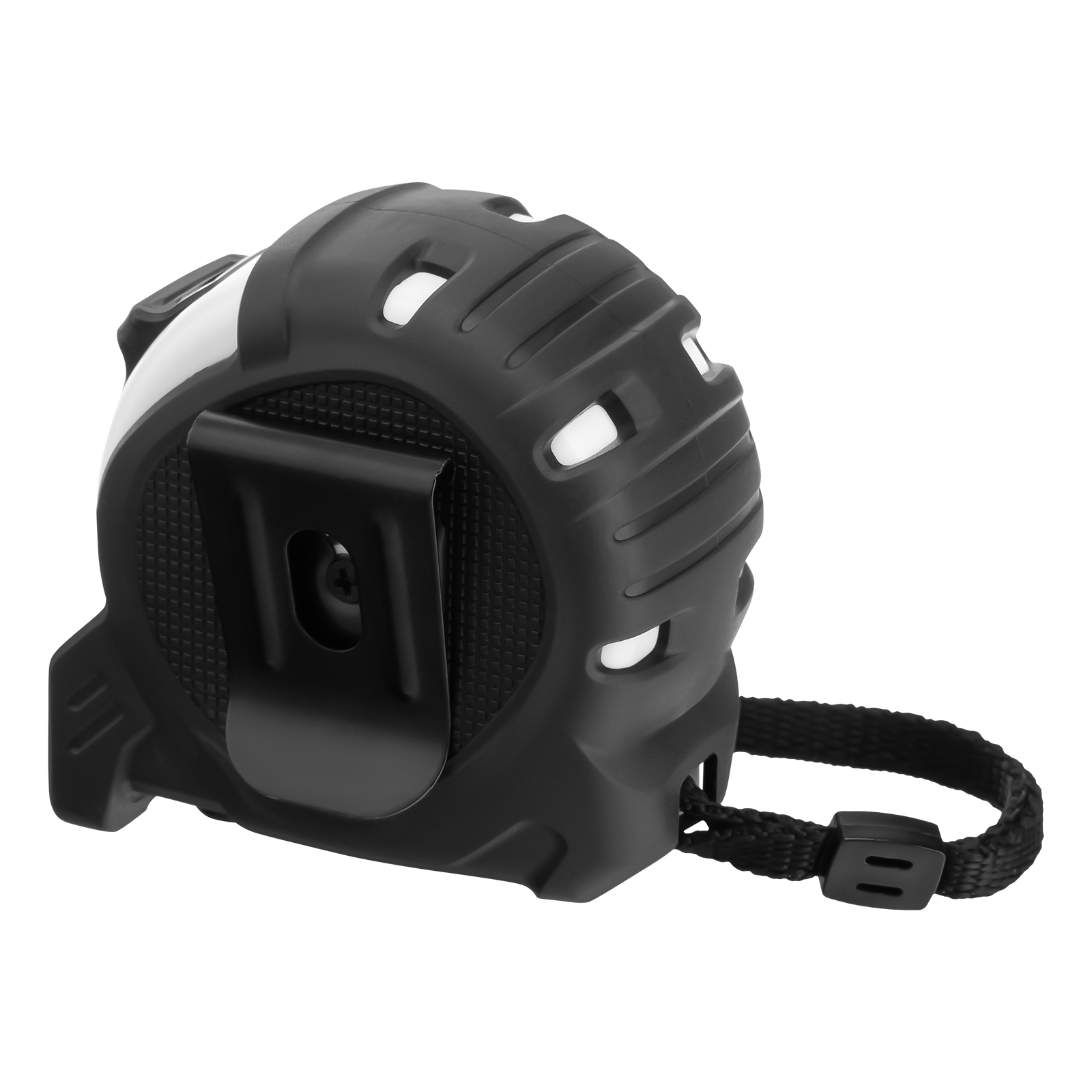 - Удобная транспортировка — рулетку можно повесить на запястье за ремешок или закрепить на поясе при помощи металлического зажима на корпусе.