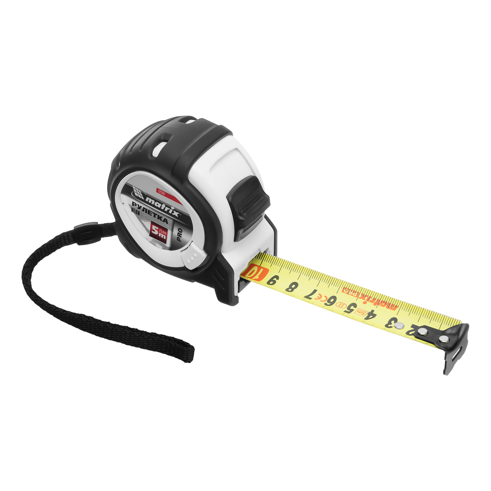Рулетка Matrix PRO Neon 32592 в обрезиненном корпусе, с 3 механизмами фиксации ленты длиной 5 м и шириной 25 мм, служит для определения расстояний и размеров различных предметов. Крупные цифры на матовом желто-зеленом полотне хорошо видны, что облегчает считывание результатов. Измерительное полотно можно зафиксировать на нужной отметке при помощи стопора или одной из двух кнопок-пауз — это удобно при проведении большого количества замеров. Рулетка предназначена для выполнения профессиональных и бытовых измерительных работ.