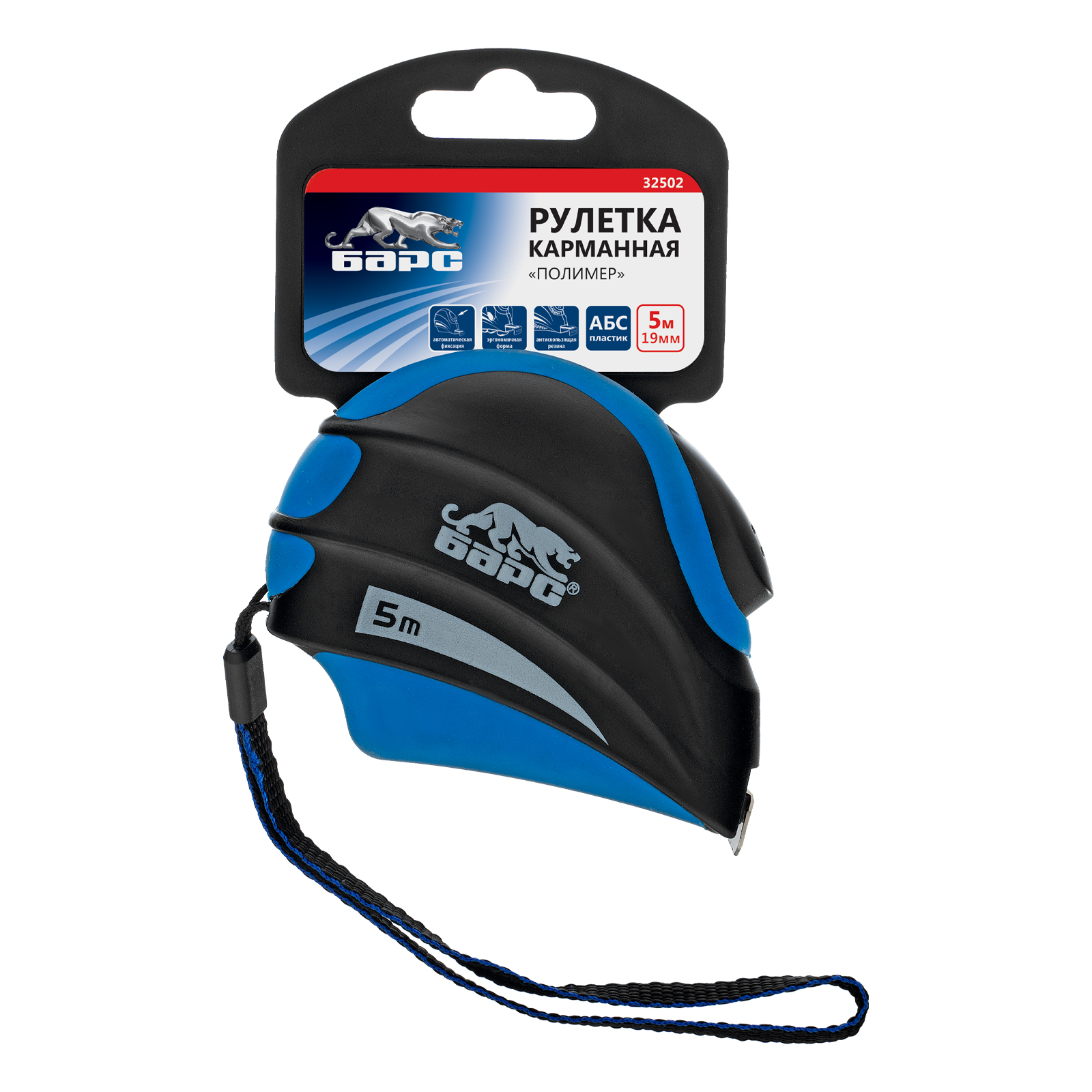 Рулетка Полимер,5 м х 19 мм,автоматическая фиксация,эргономичная форма Барс в Москве