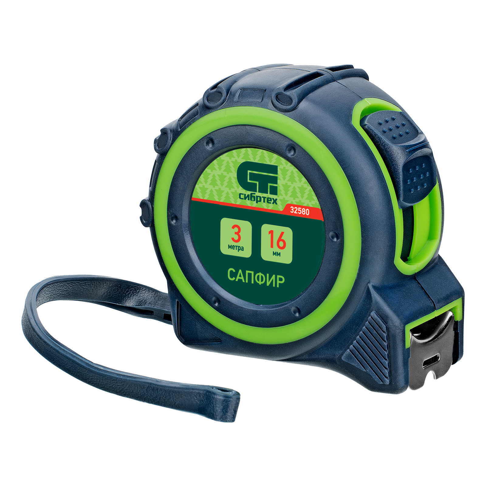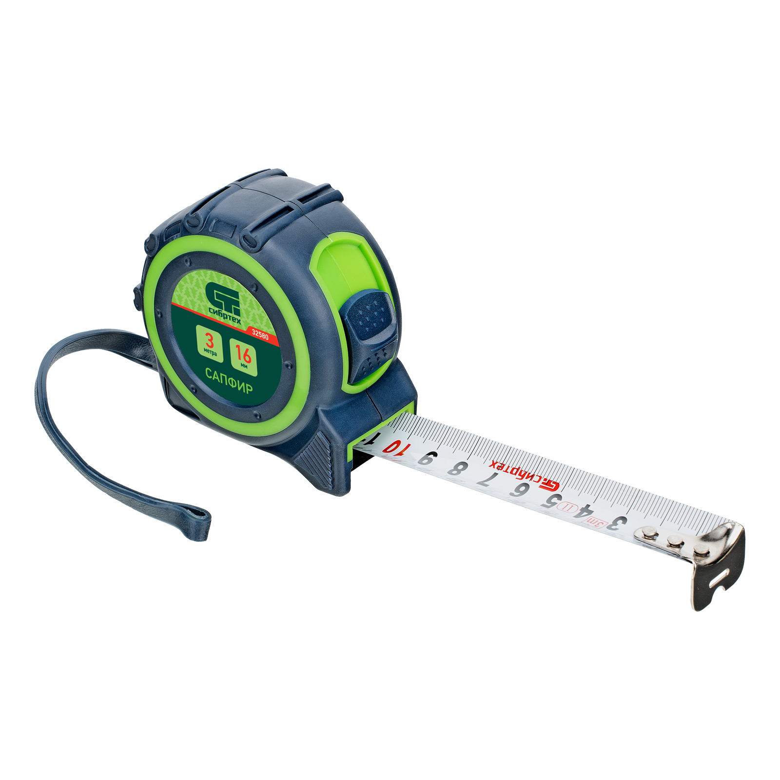 Рулетка Сибртех Сапфир 32580 с лентой 3 м х 16 мм выполнена в двухкомпонентном корпусе. Инструмент поможет определить длину заготовок, материалов, конструкций и т.д. Будет полезна дома, в гараже, мастерской, при проведении монтажных и ремонтных работ. Зацеп с отверстием позволяет использовать рулетку в качестве циркуля.