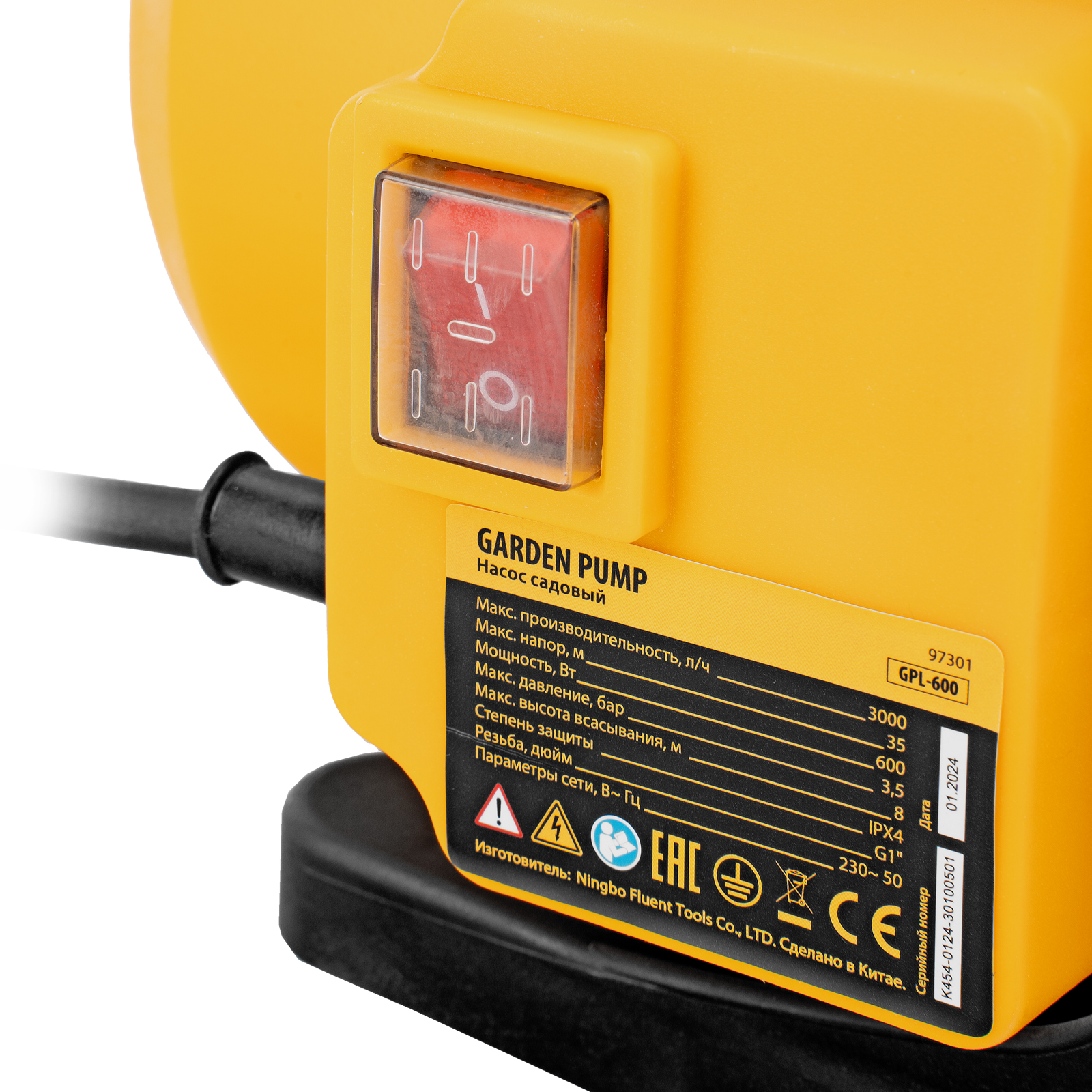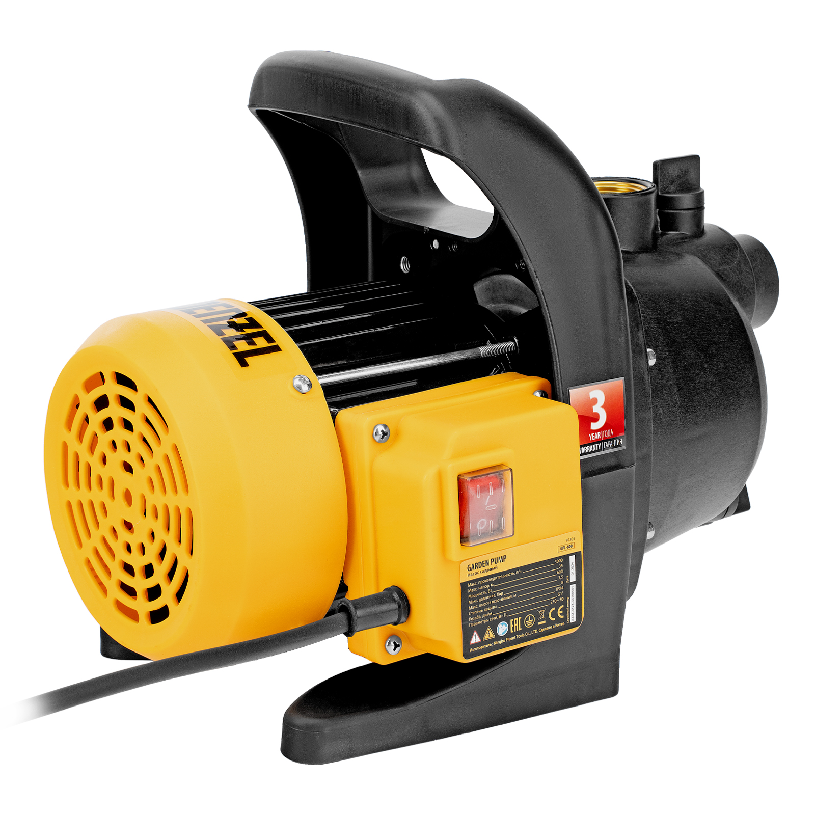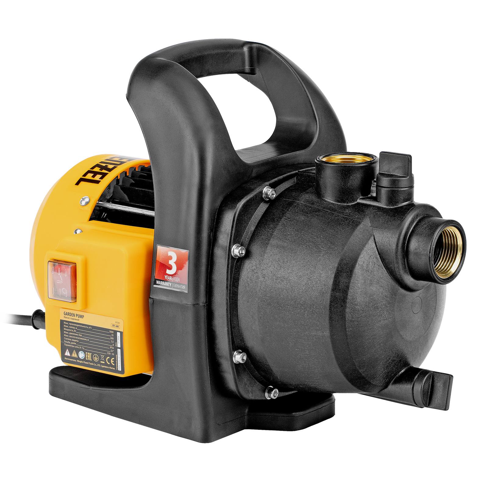 Садовый поверхностный насос GPL600, 600 Вт, 3000 л/ч, подъем 35 м, пластик Denzel в Москве