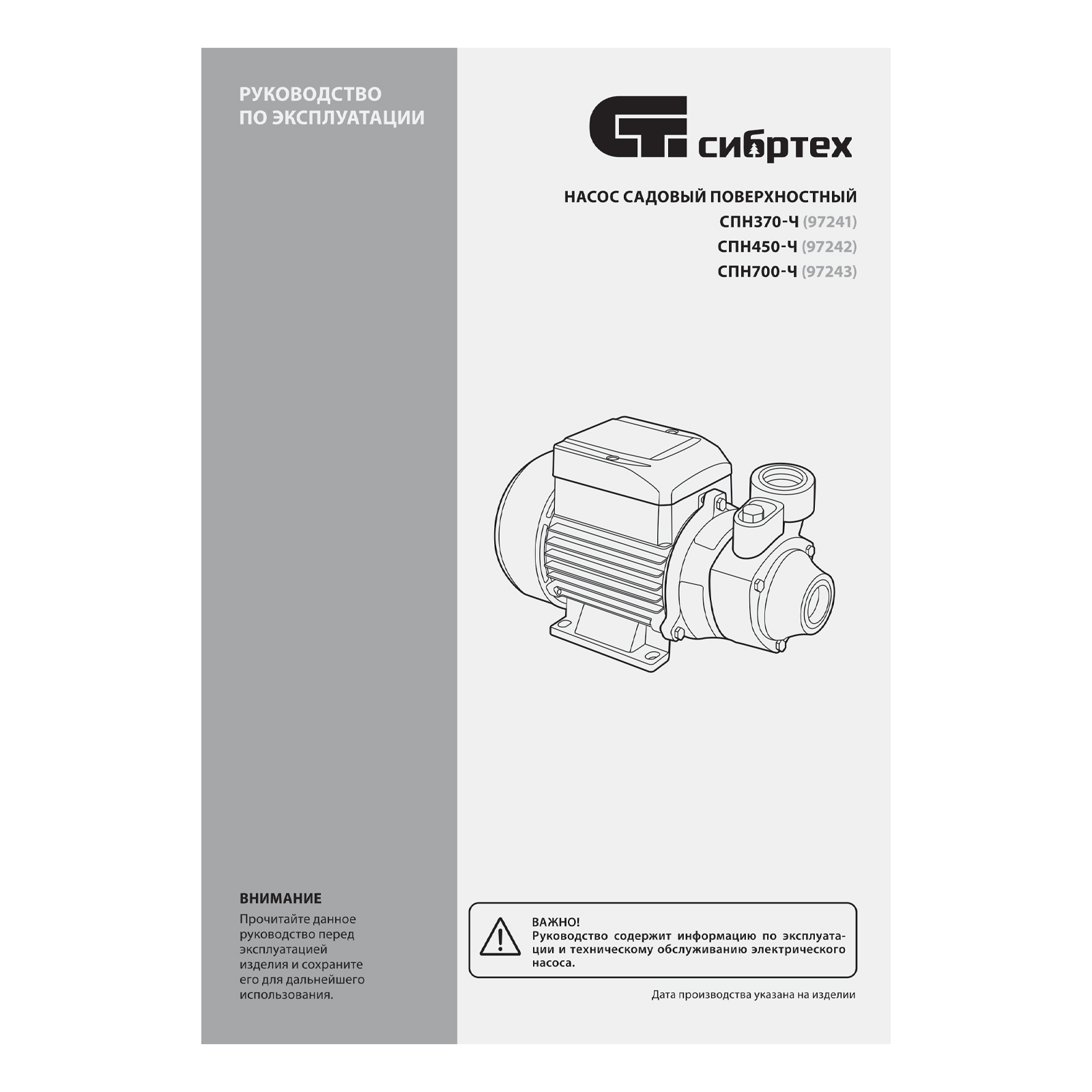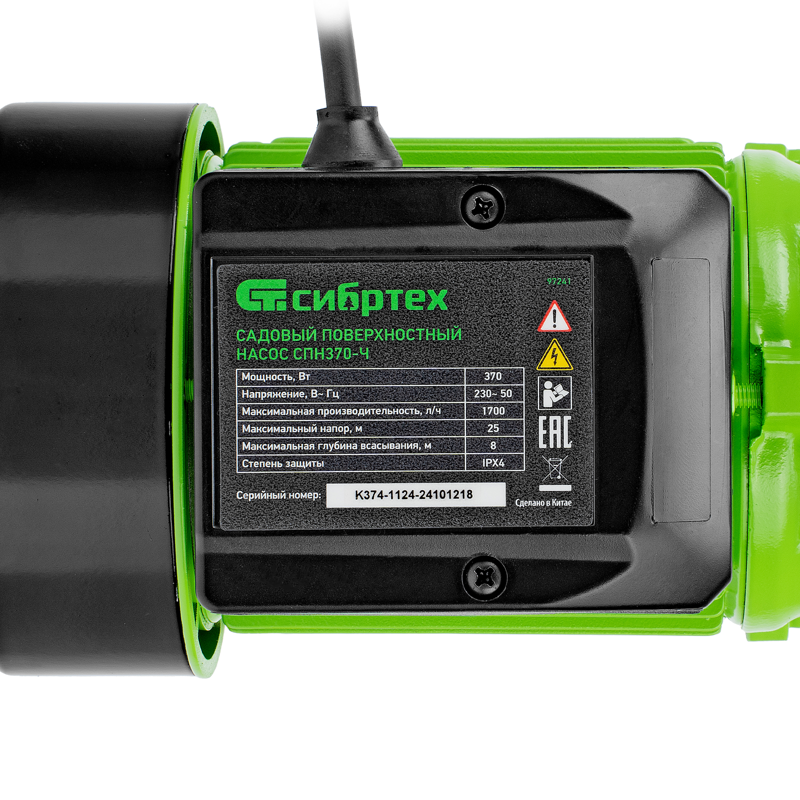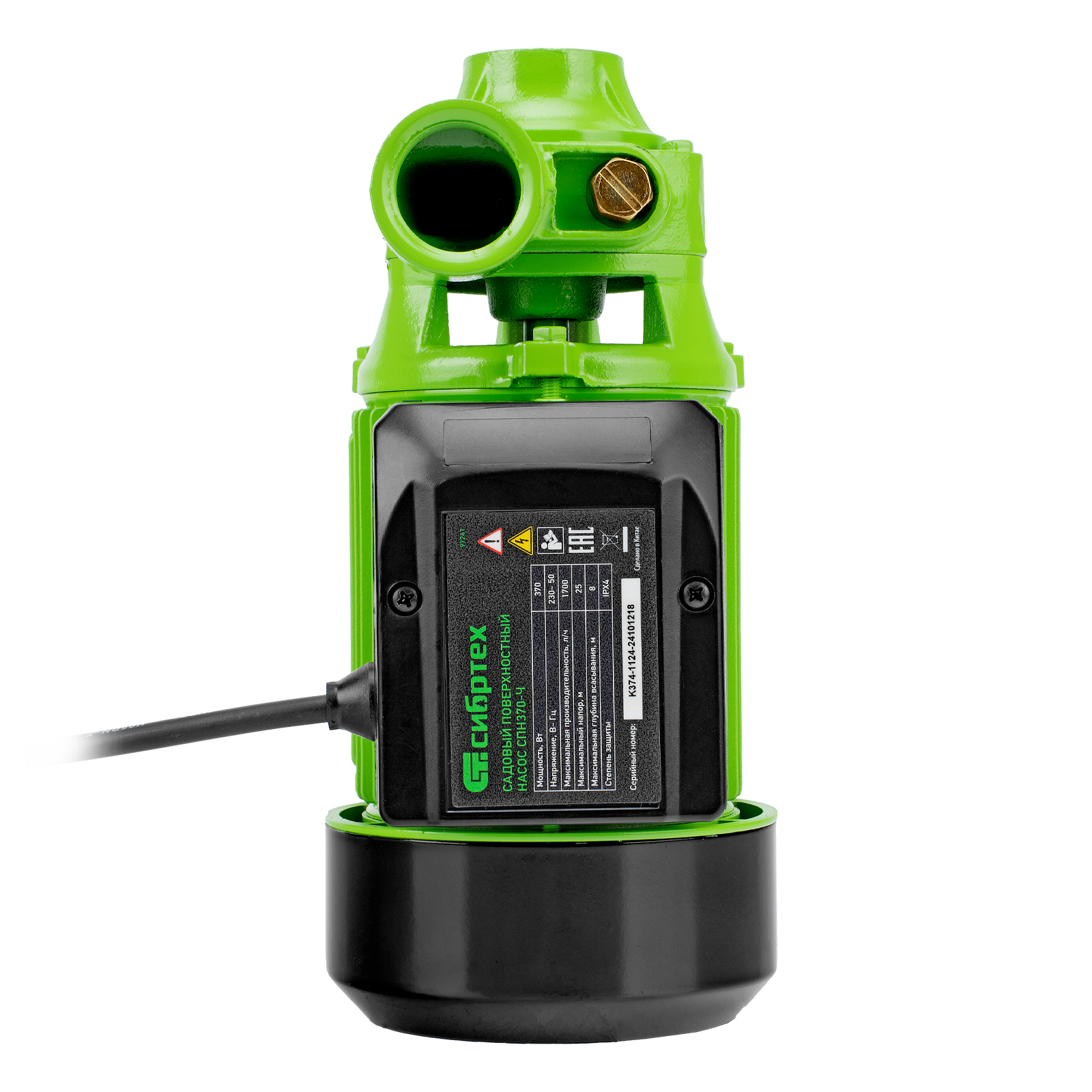 Садовый поверхностный насос СПН370-Ч, 370 Вт, напор 25 м, 1700 л/ч, чугун Сибртех в Москве