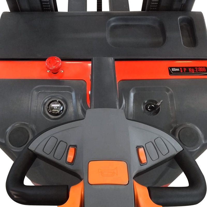 Встроенный индикатор заряда позволит всегда поддерживать оборудование в рабочем состоянии. На штабелере установлено множество дополнительных элементов, в частности: кнопка аварийного отключения, позволяющая быстро отключить штабелер в случае возникновения опасной ситуации, решетчатый экран на мачте, защищающий оператора от возможных травм, интегрированный замок зажигания и полный набор необходимых клавиш управления на ручке, в том числе кнопка «черепашьего хода».