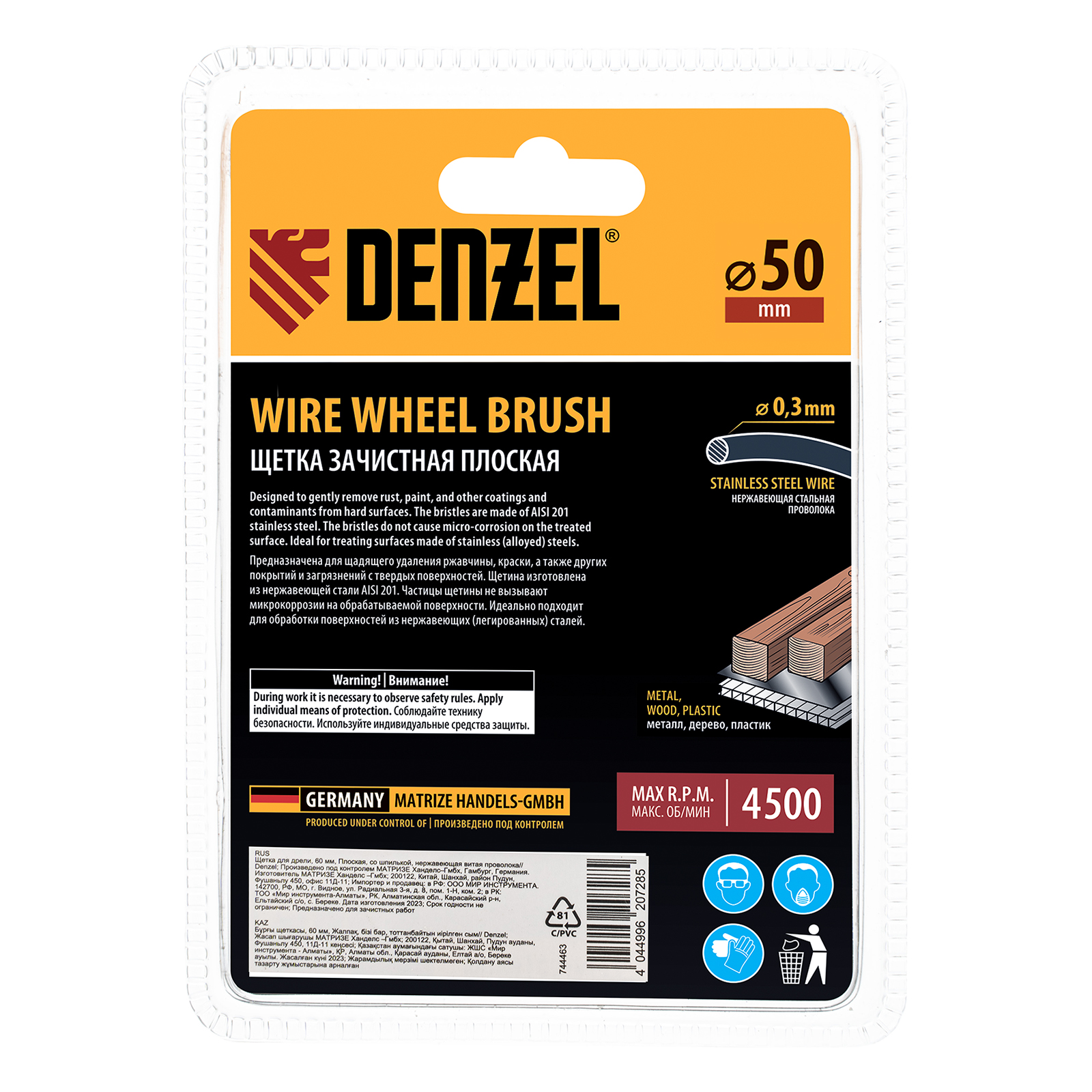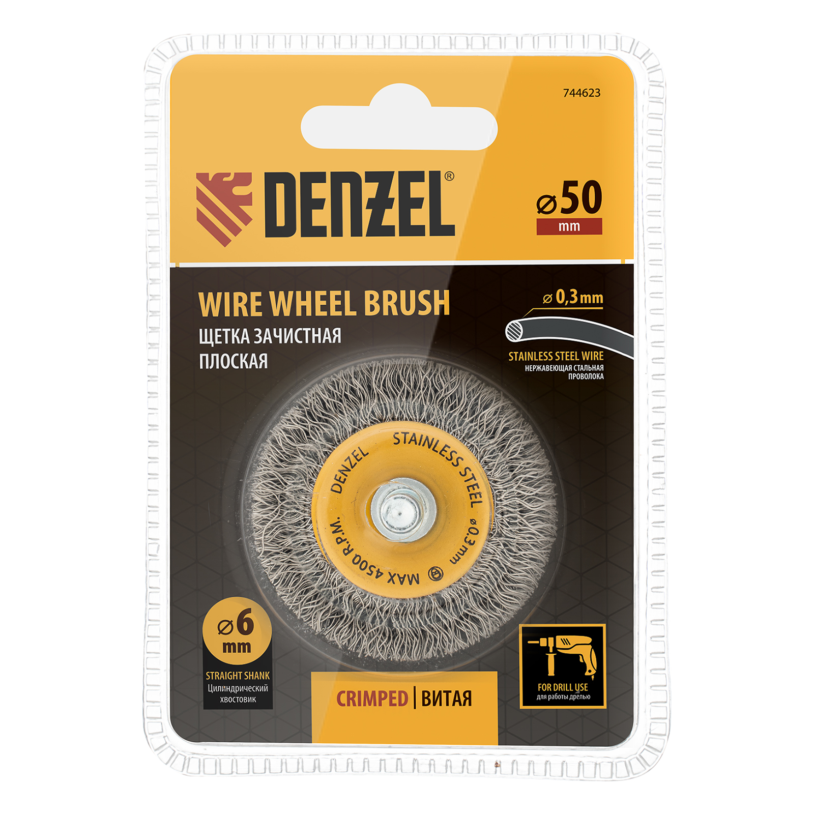 Плоская щетка Denzel 744623 диаметром 50 мм, со шпилькой и щетиной из нержавеющей витой проволоки, предназначена для выполнения зачистных работ. Позволяет бережно обработать поверхность, снять тонкий слой краски, ржавчины, удалить загрязнения. Подходит для твердых материалов: стали, в том числе нержавеющей, древесины, пластика и т.д. Плоская щетка оптимальна для зачистки поверхностей со сложным рельефом, имеющих углы, пазы и изгибы.
