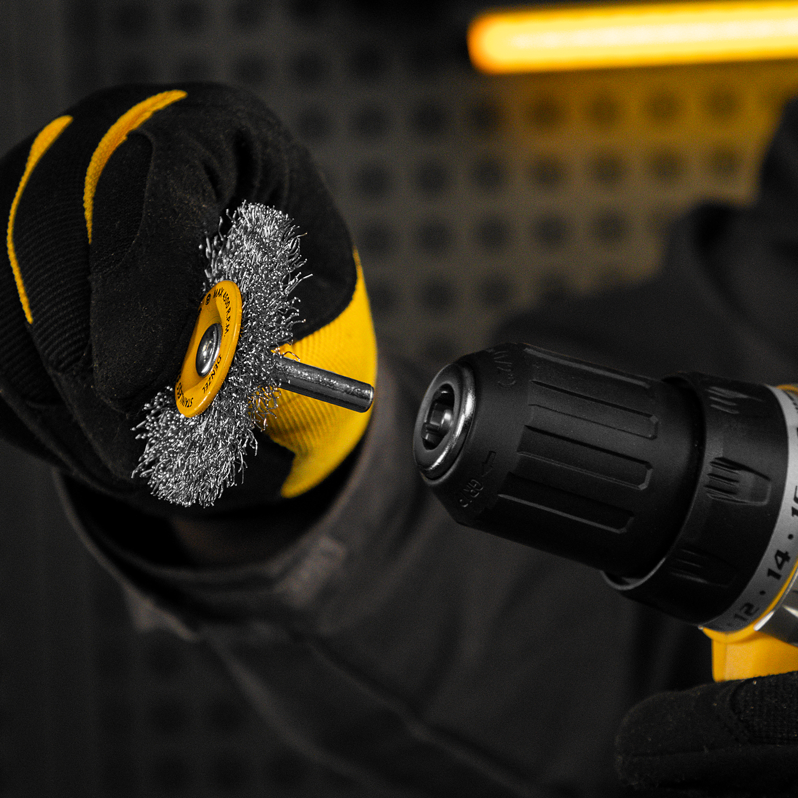 • Быстрая подготовка к работе — щетка имеет хвостовик диаметром 6 мм для установки в патрон дрели.