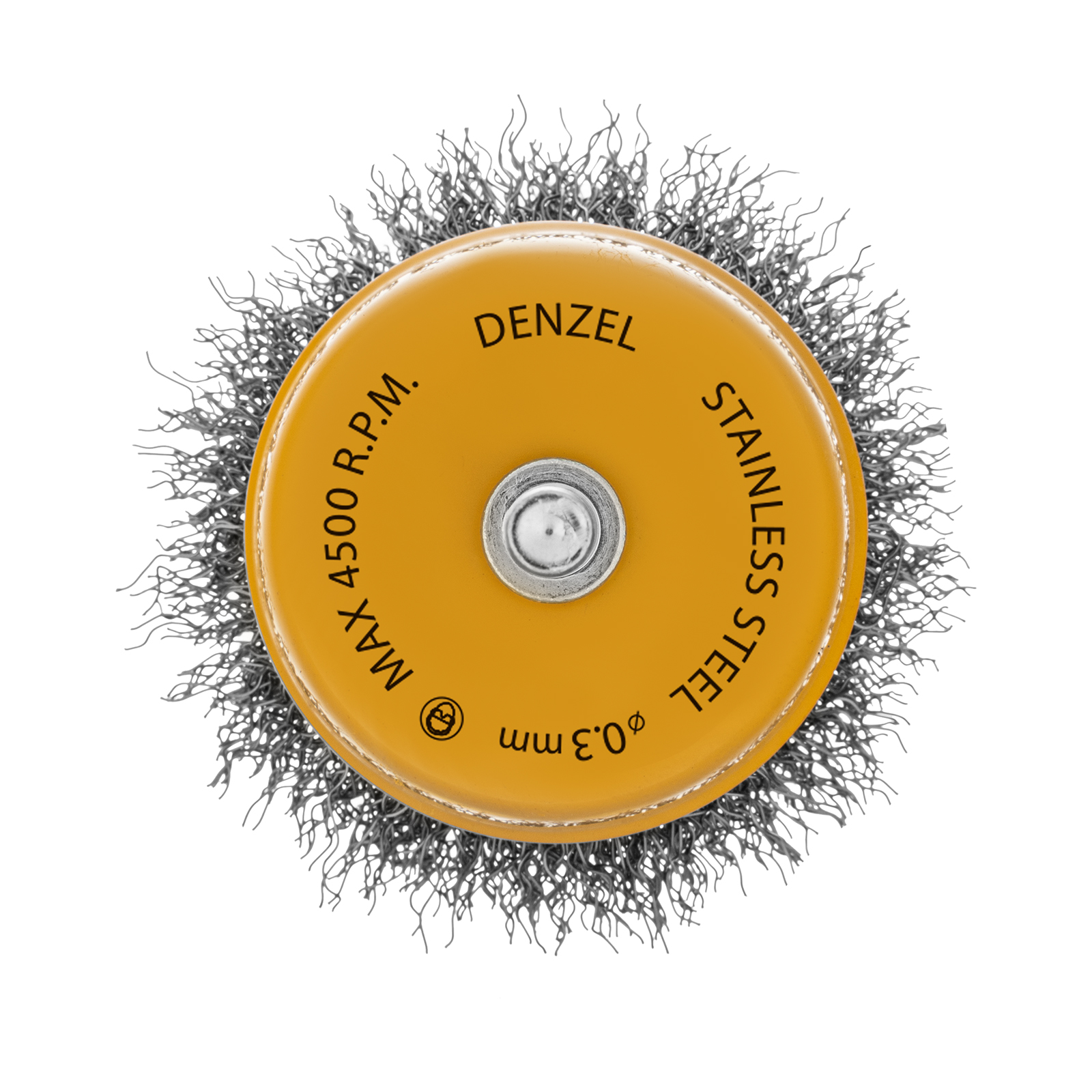 Щетка для дрели «Чашка» Denzel 744613 диаметром 65 мм, со шпилькой и щетиной из нержавеющей витой проволоки, используется для щадящей обработки плоских твердых поверхностей из металла, древесины, пластика, идеально подходит для нержавеющей стали. Оптимальна для снятия тонкого слоя старой краски, ржавчины, удаления загрязнений. Имеет хвостовик диаметром 6 мм и устанавливается в патрон дрели или прямошлифовальной машины (ПШМ).