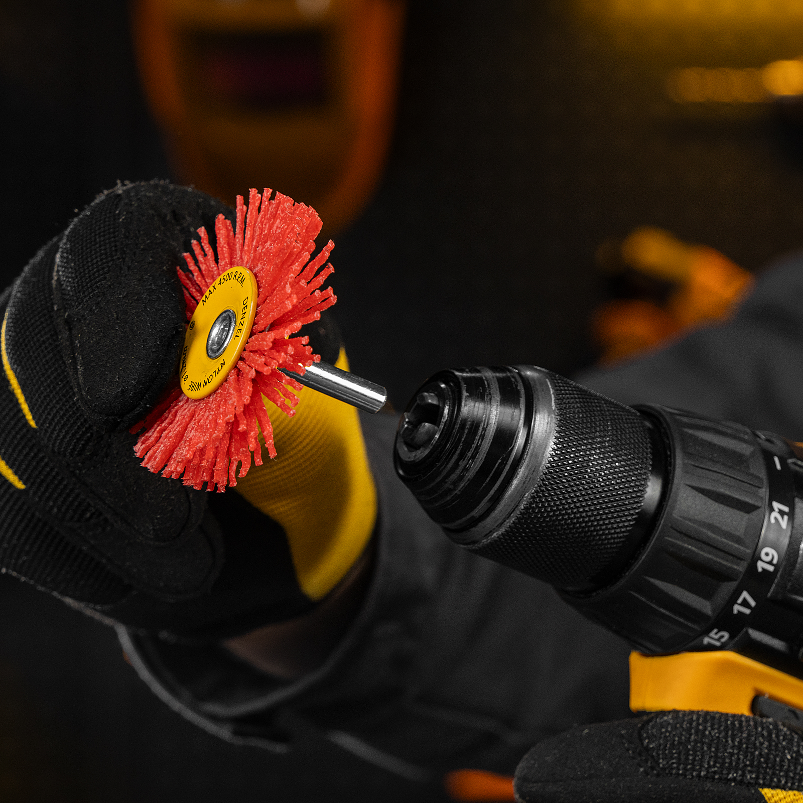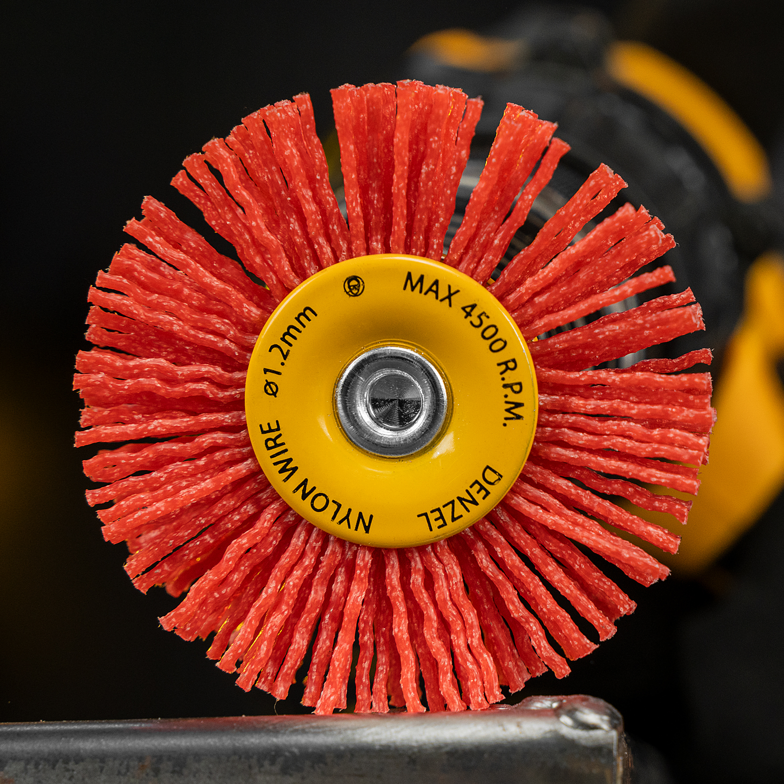 Плоская щетка Denzel 74433 диаметром 65 мм, со шпилькой и нейлоновой щетиной, — насадка для дрели, предназначенная для выполнения шлифовальных работ по пластику, древесине, стали и цветным металлам. Щетина изготовлена из высококачественного нейлона с нанесенным абразивом из оксида алюминия. Щетка оптимальна для деликатного удаления загрязнений, краски, пятен ржавчины с твердых поверхностей. Позволяет придать шероховатость поверхности, подходит для браширования древесины. Благодаря плоской форме насадка удобна для обработки пазов, изгибов и угловых соединений.