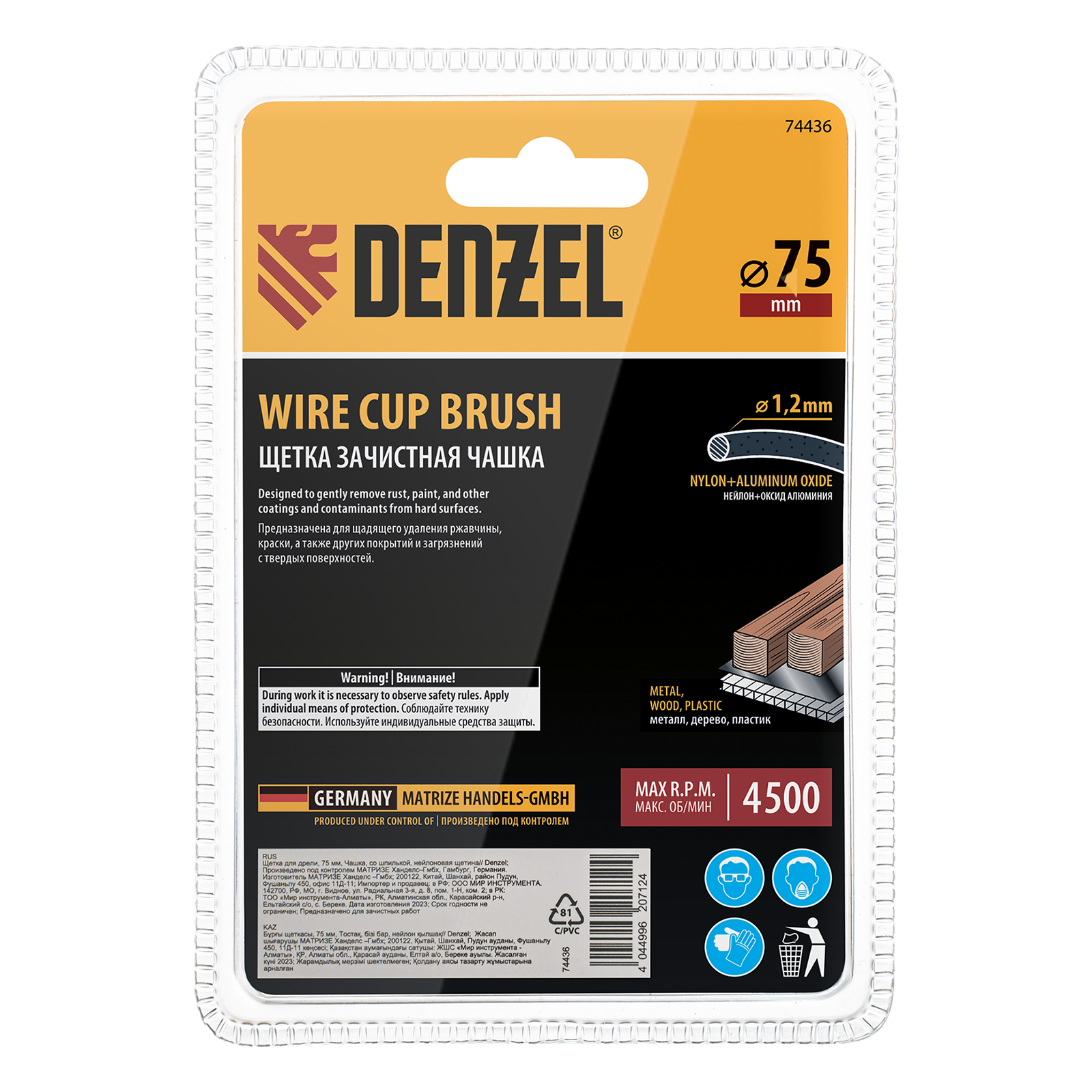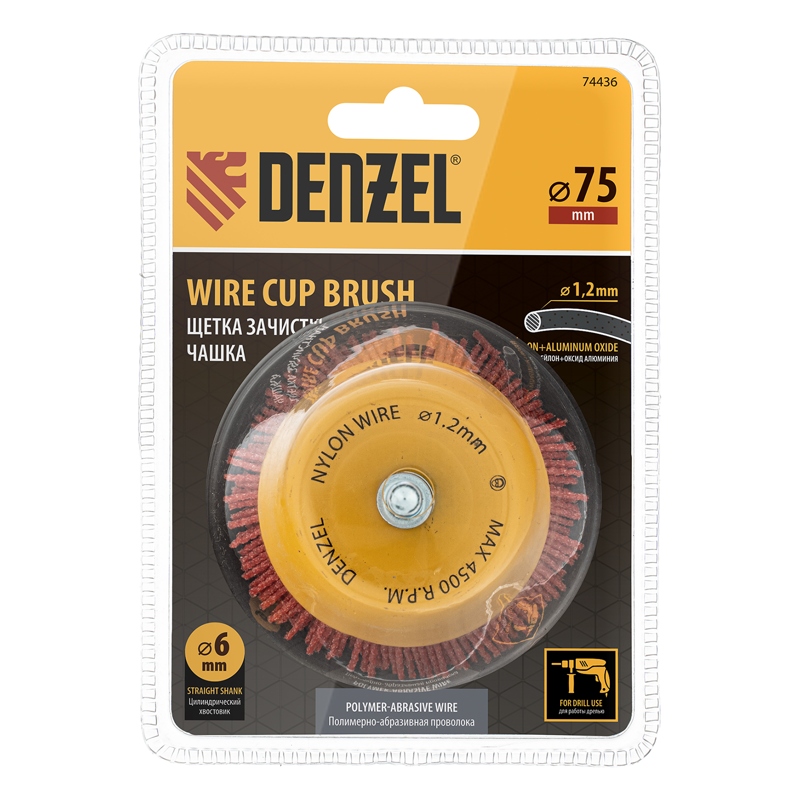 Щетка Denzel 74436 в форме чашки диаметром 75 мм, со шпилькой и нейлоновой щетиной, — насадка для дрели, предназначенная для выполнения шлифовальных работ по пластику, древесине, стали и цветным металлам. Щетина изготовлена из высококачественного нейлона с нанесенным абразивом из оксида алюминия. Щетка оптимальна для деликатного удаления загрязнений, краски, пятен ржавчины с твердых поверхностей. Позволяет придать шероховатость поверхности, подходит для браширования древесины. Насадка удобна для обработки плоских деталей большой площади.