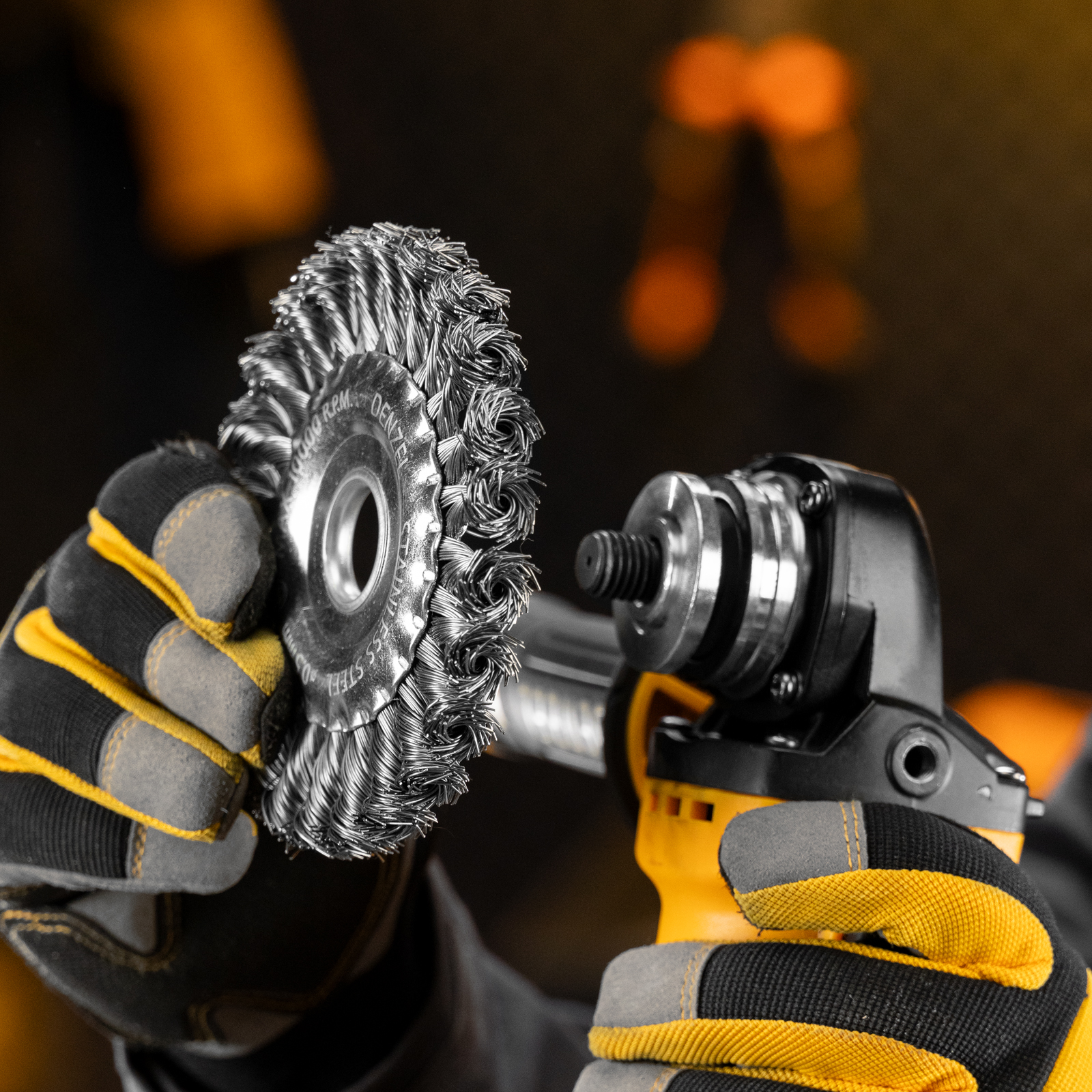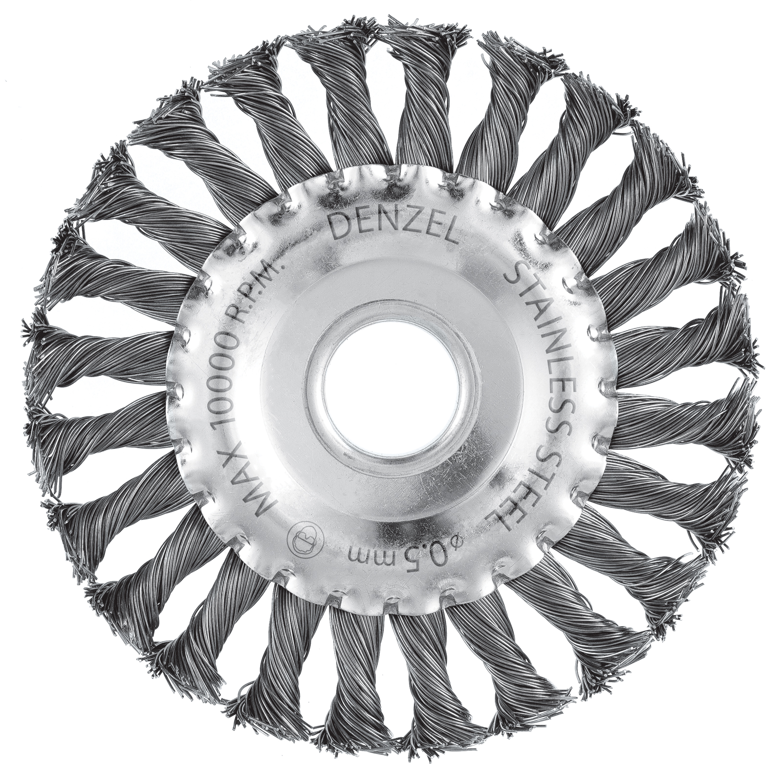 Щетка для УШМ, 125 мм, "Плоская", крученая нержавеющая проволока 0.5 мм, посадка 22.2 мм Denzel в Москве
