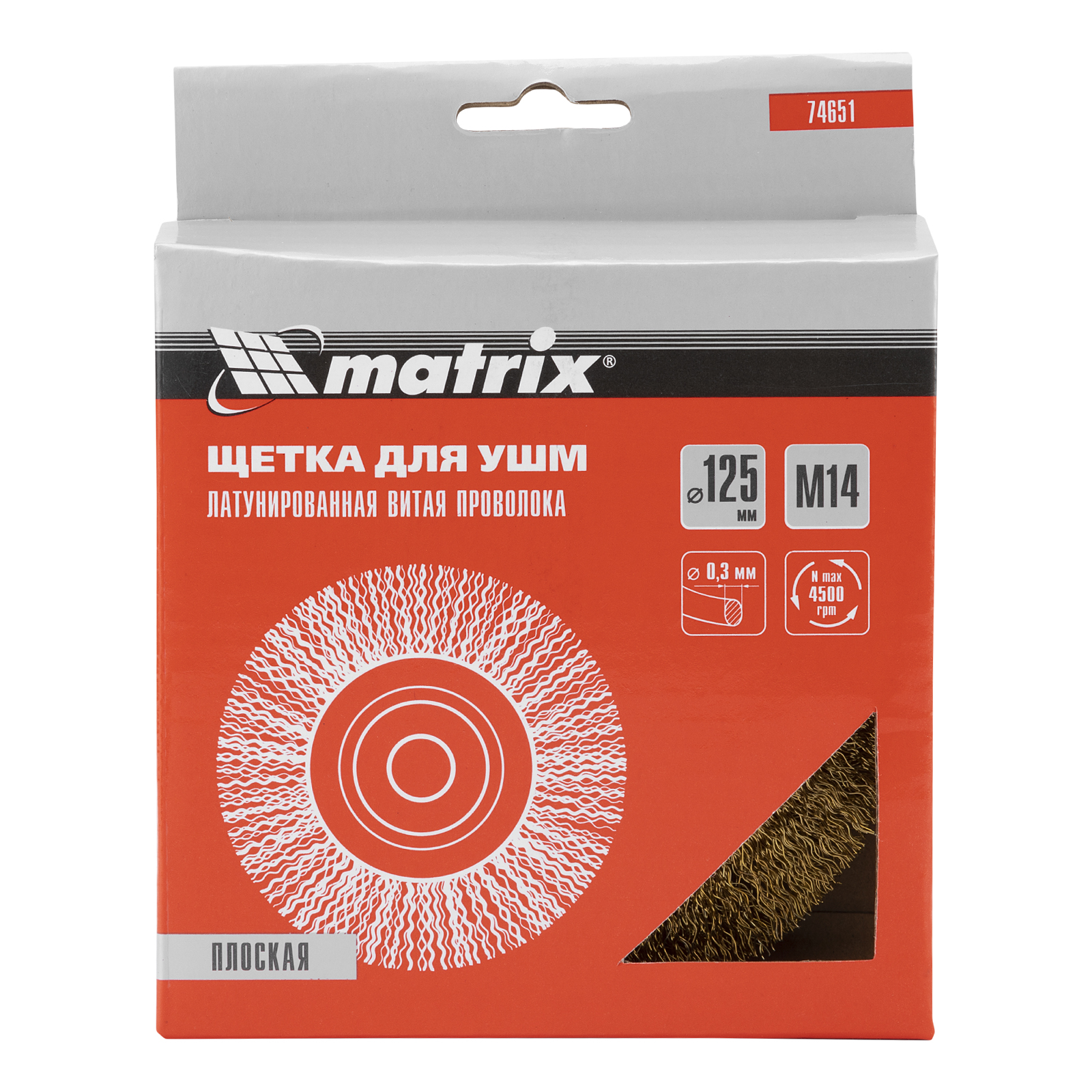 Щетка для УШМ, 125 мм, М14, плоская, латунированная витая проволока Matrix в Москве