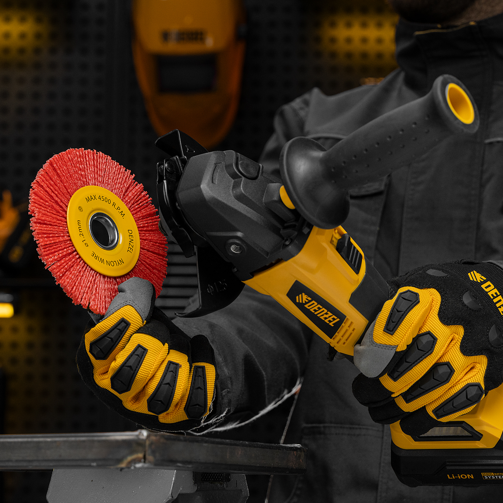 Щетка для УШМ, 125 мм, Плоская, нейлоновая щетина, посадка 22,2 мм Denzel в Москве