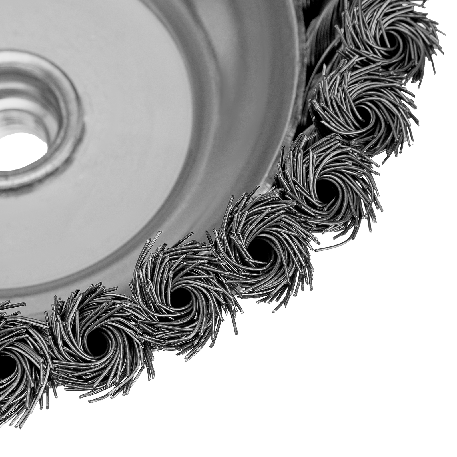 - Прочность и долговечность — щетина из крученой стальной проволоки выдерживает значительные нагрузки.