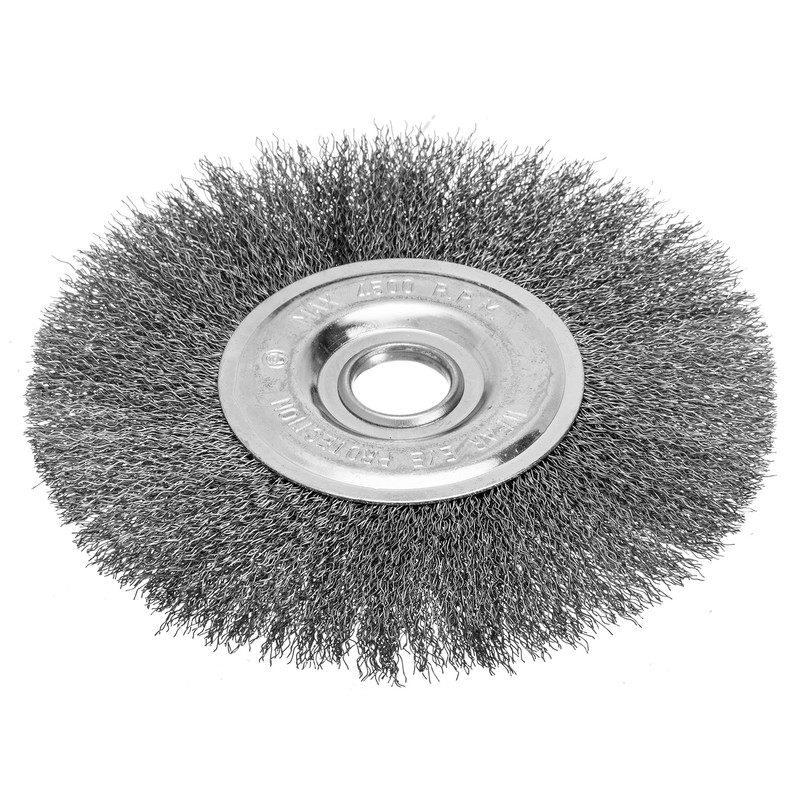 Плоская щетка для УШМ Сибртех 746667 диаметром 175 мм, с посадкой 22,2 мм, с щетиной из витой проволоки, предназначена для щадящей очистки твердых поверхностей от загрязнений, ржавчины, остатков краски и других покрытий. Щетина из проволоки толщиной 0,3 мм постепенно снимает тонкий слой материала. Плоская форма щетки делает ее оптимальным инструментом для обработки внутренних углов, пазов, изгибов и малодоступных мест. Щетка позволяет придать шероховатость или подчеркнуть структуру материала. Насадка устанавливается на фланец углошлифовальной машины и подходит для продолжительной работы, не требующей частой смены оснасток. Рекомендуемая максимальная скорость вращения составляет 4500 об/мин. Для обеспечения безопасности оператора следует использовать средства индивидуальной защиты. Щетка применяется в строительной, производственной сфере, а также в быту.