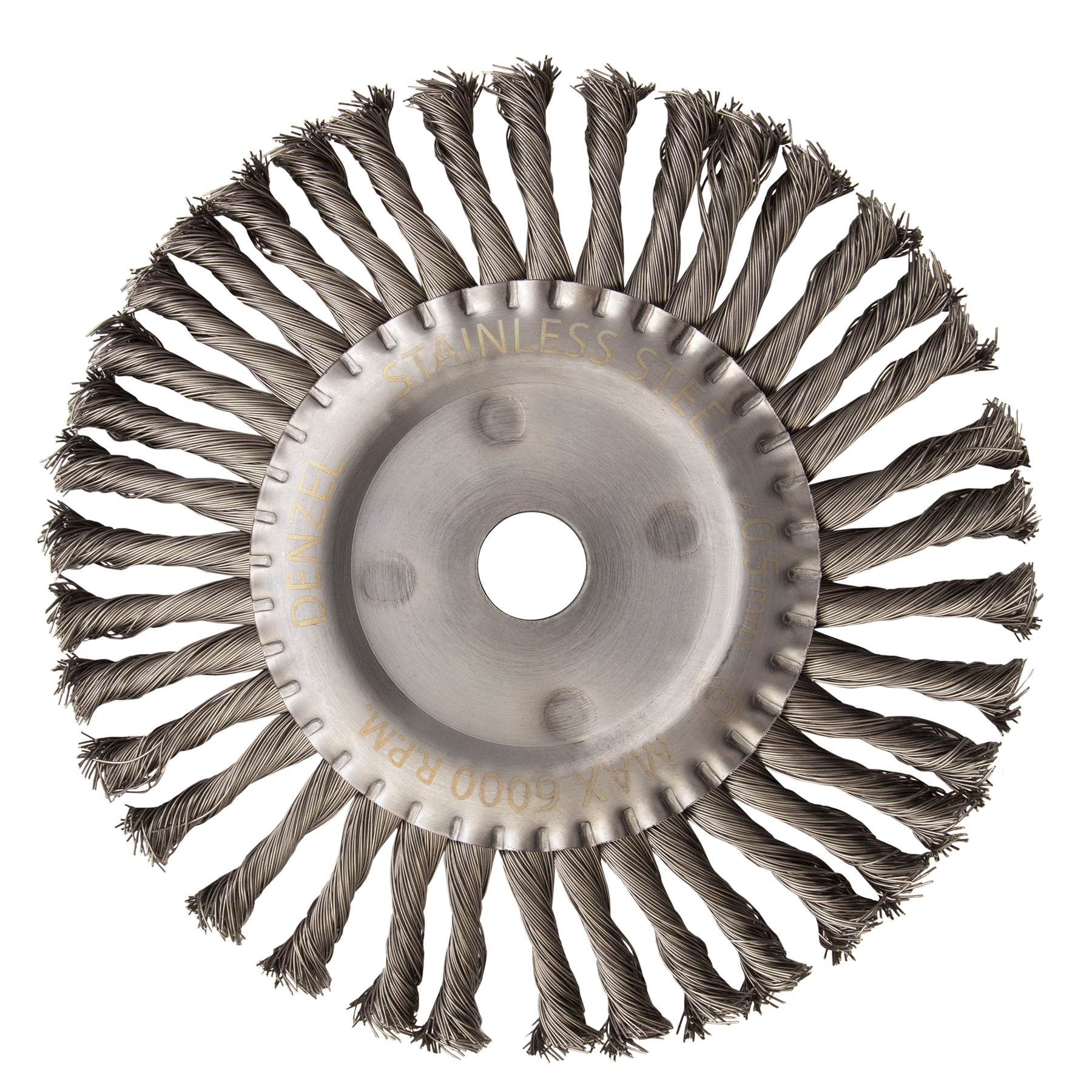 Плоская щетка для УШМ Denzel 746383 диаметром 200 мм, с посадкой 22,2 мм, с щетиной из крученой нержавеющей проволоки 0,5 мм, предназначена для снятия толстого верхнего слоя с металлических, деревянных, бетонных поверхностей. Удаляет загрязнения, ржавчину, старые лакокрасочные покрытия, заусенцы, окалину с ровных поверхностей и в труднодоступных местах. Оптимальна для обработки изделий из нержавеющей стали, а также зачистки сварных швов. Щетку устанавливают на фланец углошлифовальной машины, что удобно для выполнения большого объема работ, не требующих частой смены насадок. Рекомендуемая максимальная скорость вращения 6000 об/мин. Во время работы обязательно использование средств индивидуальной защиты. Щетка будет полезна на строительной площадке, производственном предприятии, а также пригодится в быту.
