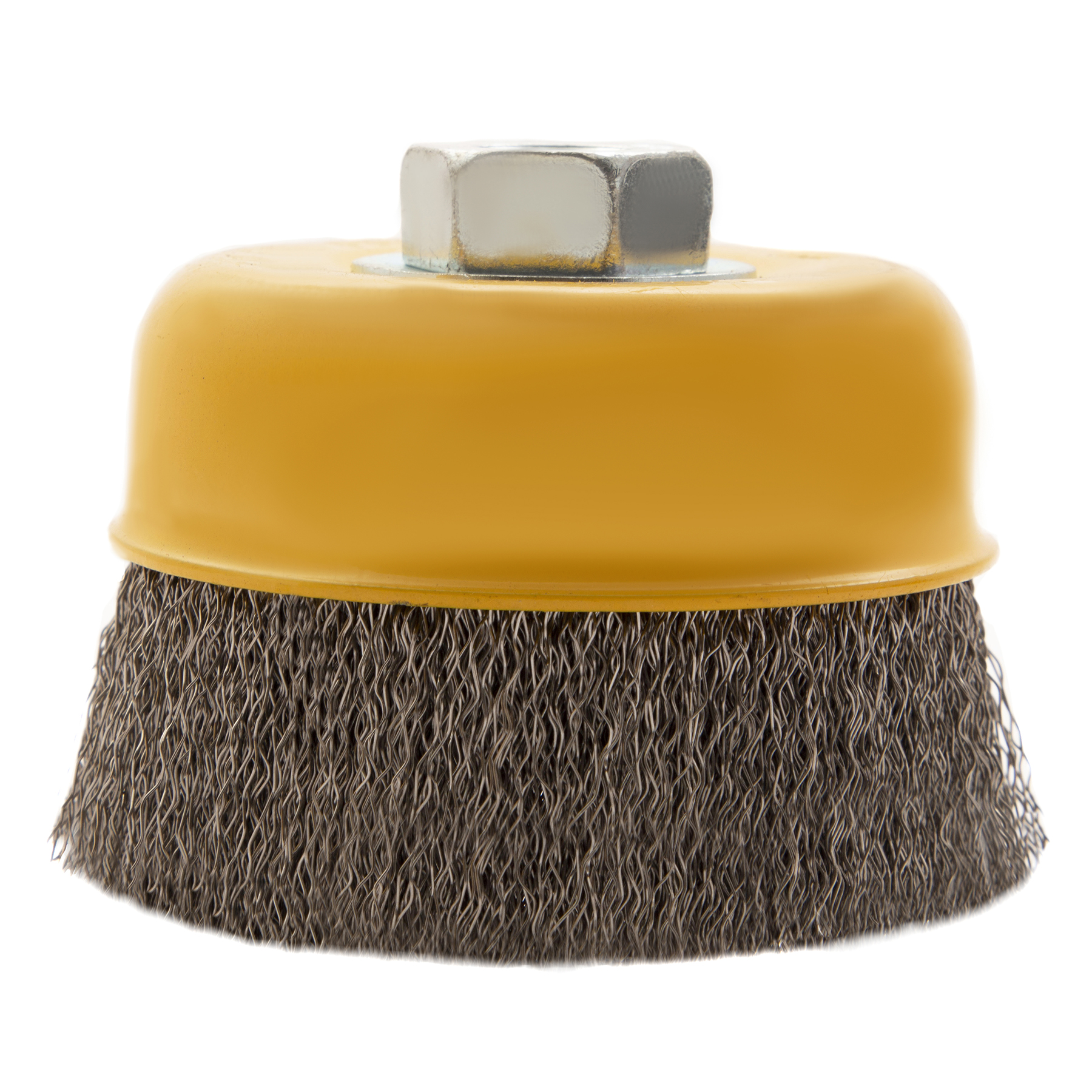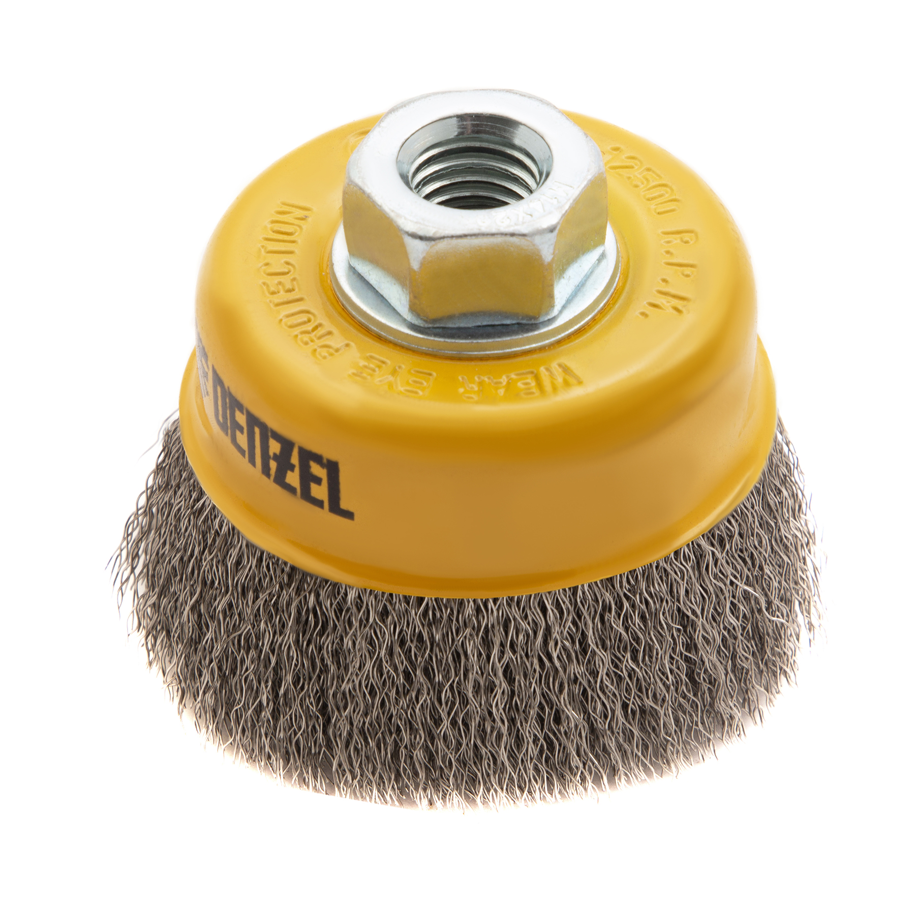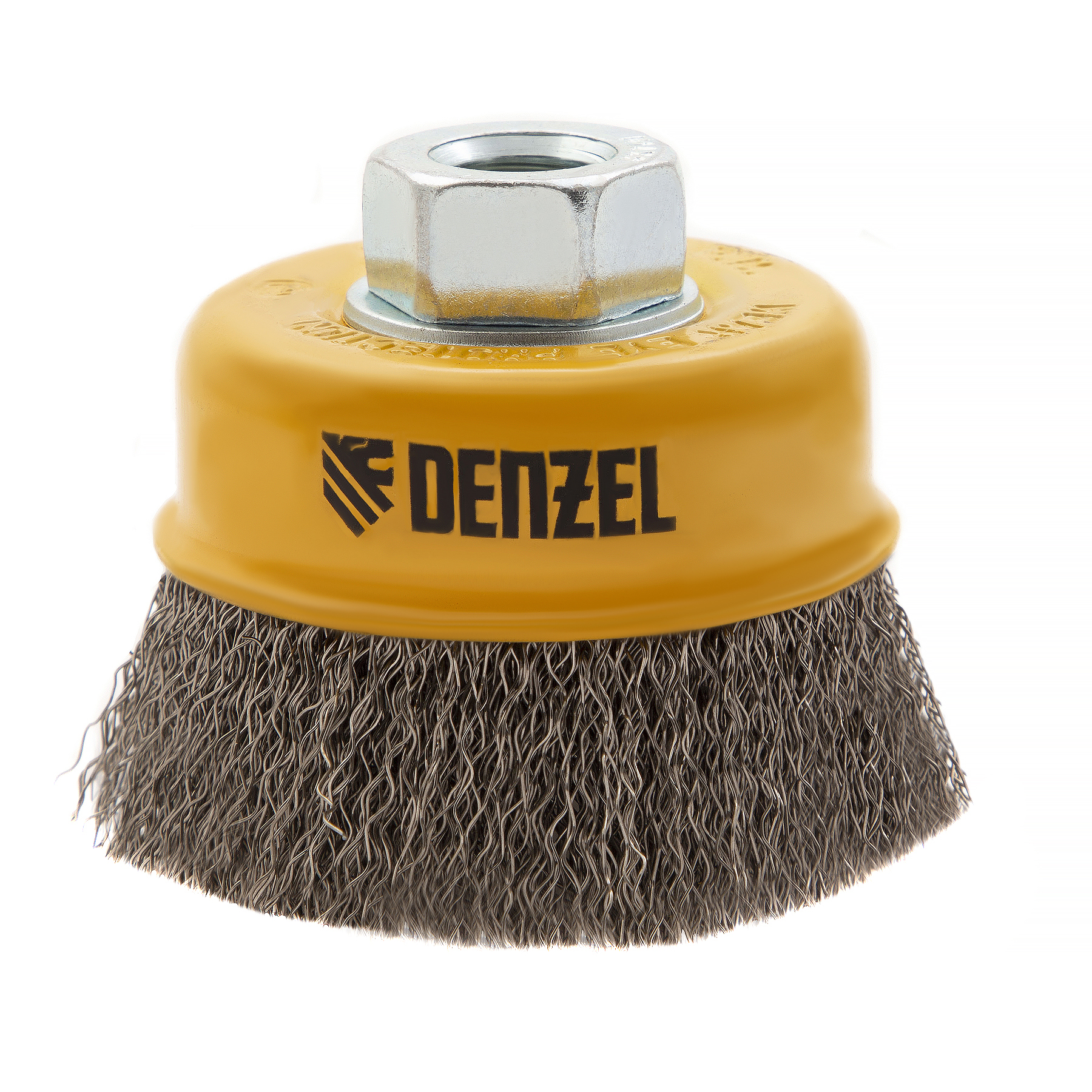 Щетка для УШМ «Чашка» Denzel 746043 с гайкой М14, диаметром 75 мм, с щетиной из витой нержавеющей проволоки диаметром 0,3 мм, позволяет быстро и аккуратно очистить металлическую, деревянную или пластиковую поверхность от незначительных загрязнений и ржавчины, а также удалить остатки лакокрасочных материалов, сделать поверхность шероховатой или матовой. Насадка предназначена для очистки плоских участков большой площади. Подходит для обработки нержавеющей стали.