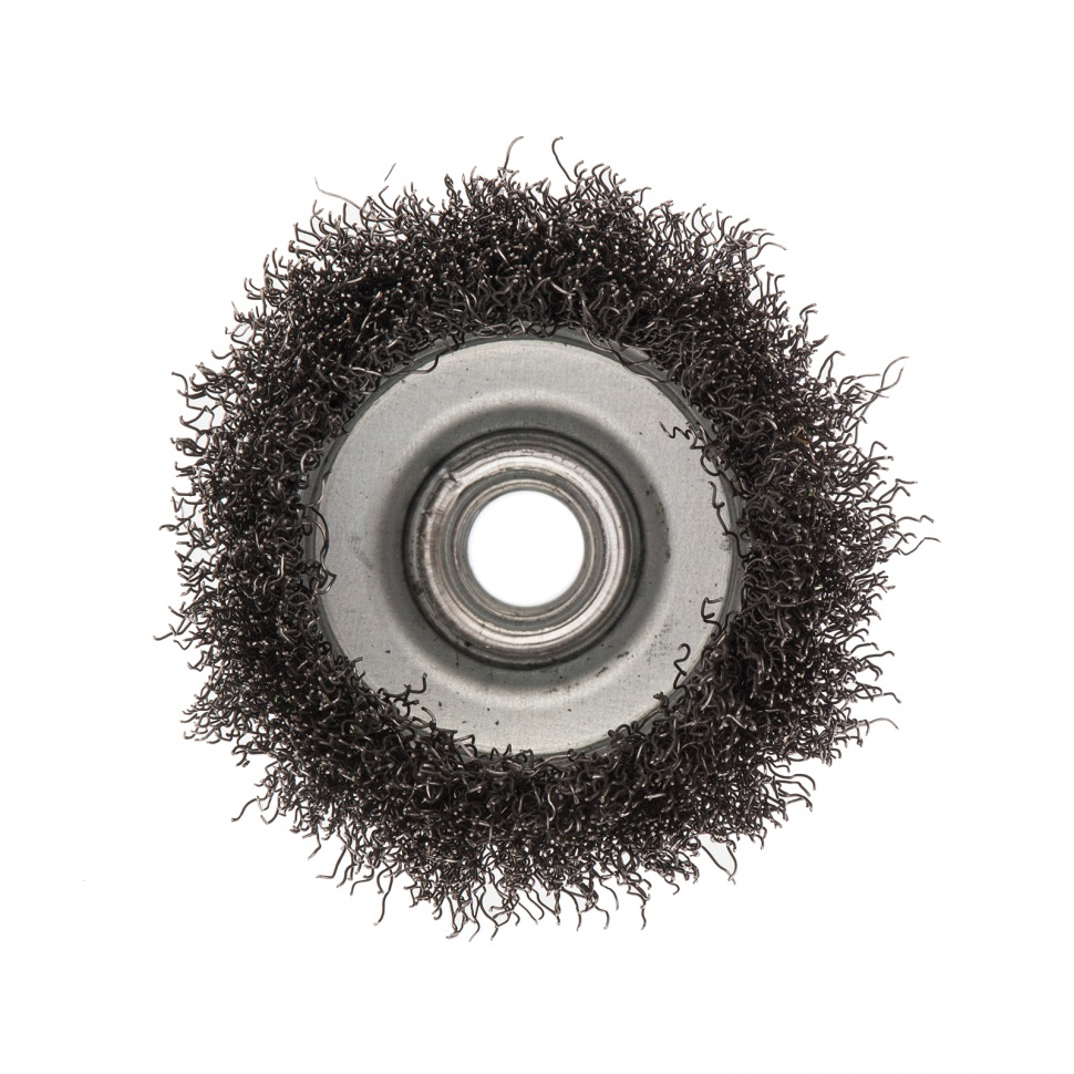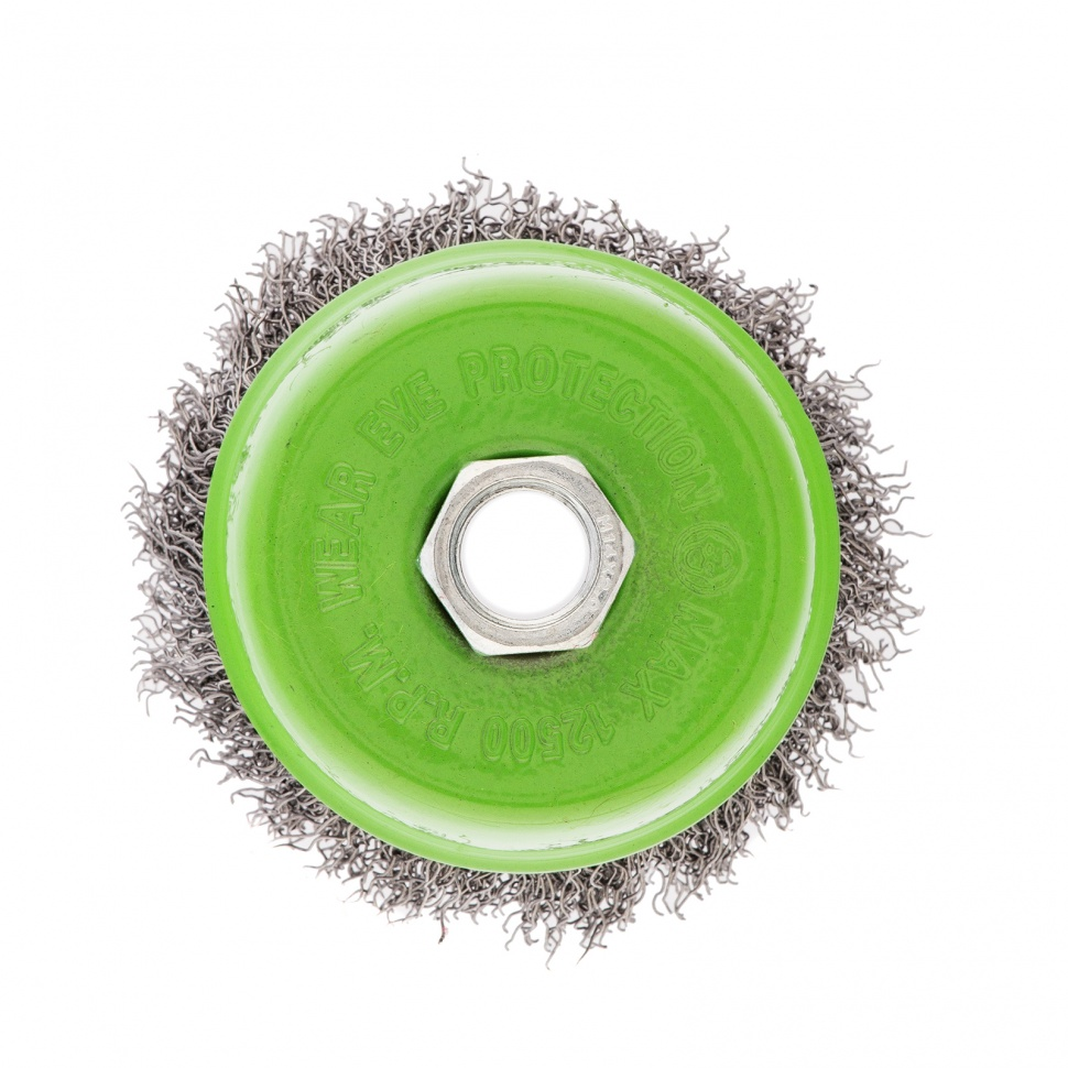 Щетка для УШМ Сибртех «чашка» 746047, М14, диаметром 75 мм, с щетиной из витой проволоки 0,3 мм, предназначена для постепенного снятия тонкого слоя материала с металлических, деревянных и пластиковых поверхностей. Удаляет ржавчину, загрязнения, а также остатки краски и других покрытий. Подходит для обработки участков значительной площади. Щетку устанавливают на вал углошлифовальной машины (УШМ), рекомендуемая максимальная скорость вращения 12500 об/мин. Работать с оснасткой следует в спецодежде.