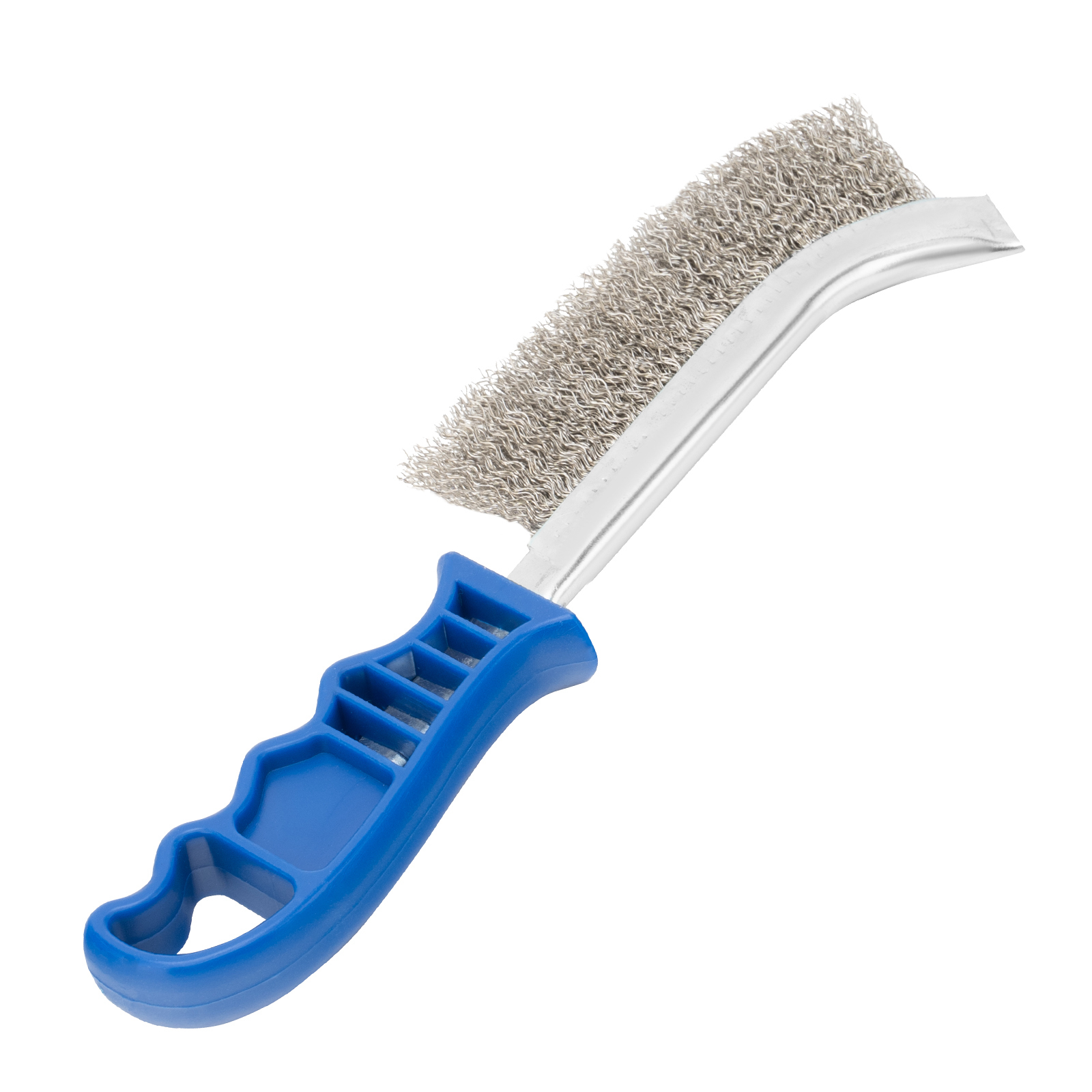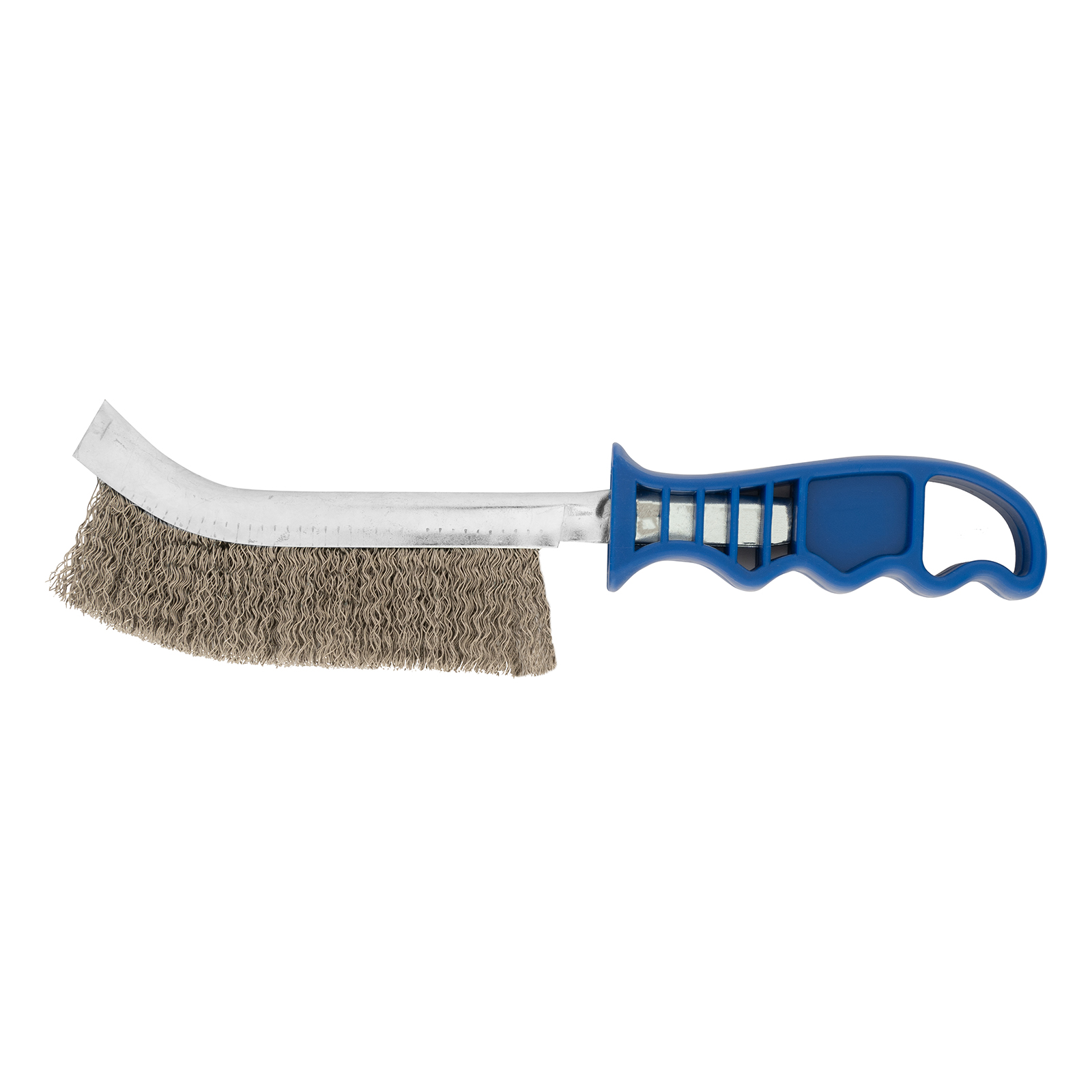 Металлическая зачистная щетка Барс 74828 с пластмассовой ручкой и щетиной из нержавеющей проволоки, используется для очищения металлических, деревянных и других поверхностей от ржавчины, загрязнений, остатков лакокрасочных покрытий. Щетина из нержавейки с высокой абразивной способностью обеспечивает эффективность щетки. Благодаря изогнутому корпусу щетка удобна для обработки поверхностей со сложным рельефом. Инструмент пригодится во время строительства, кузовного ремонта, а также на производстве и в быту.