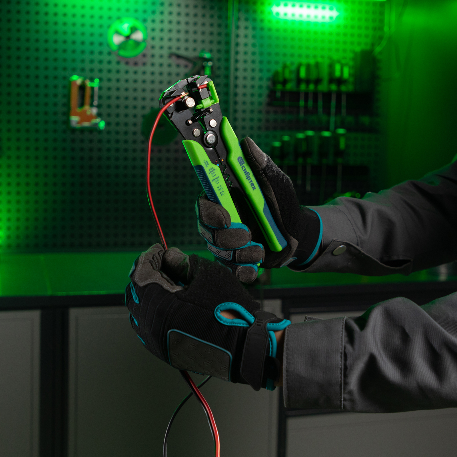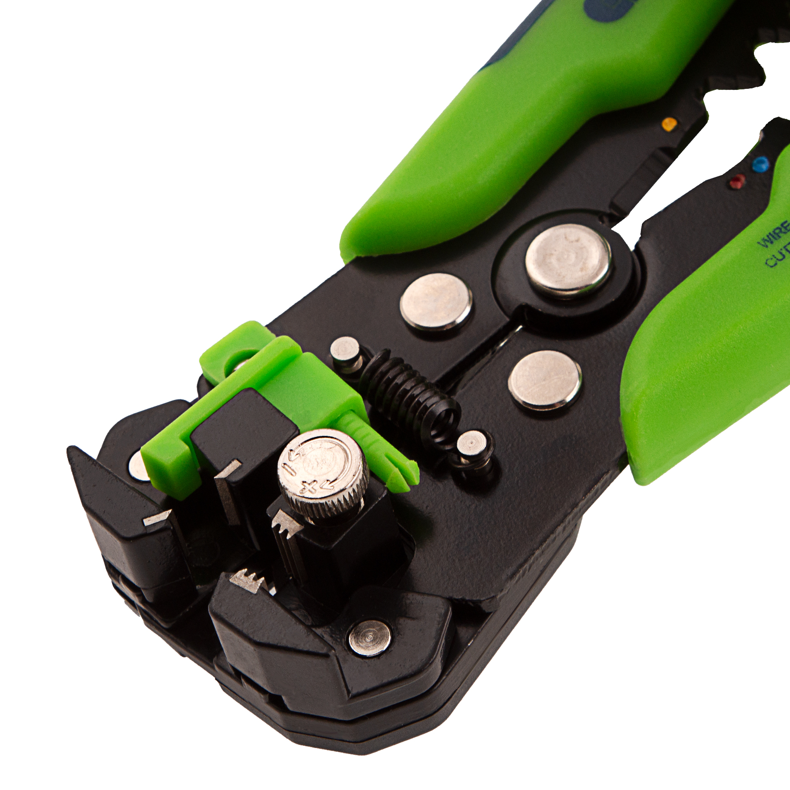 - Встроенный ограничитель позволяет регулировать длину зачищаемых электропроводов.