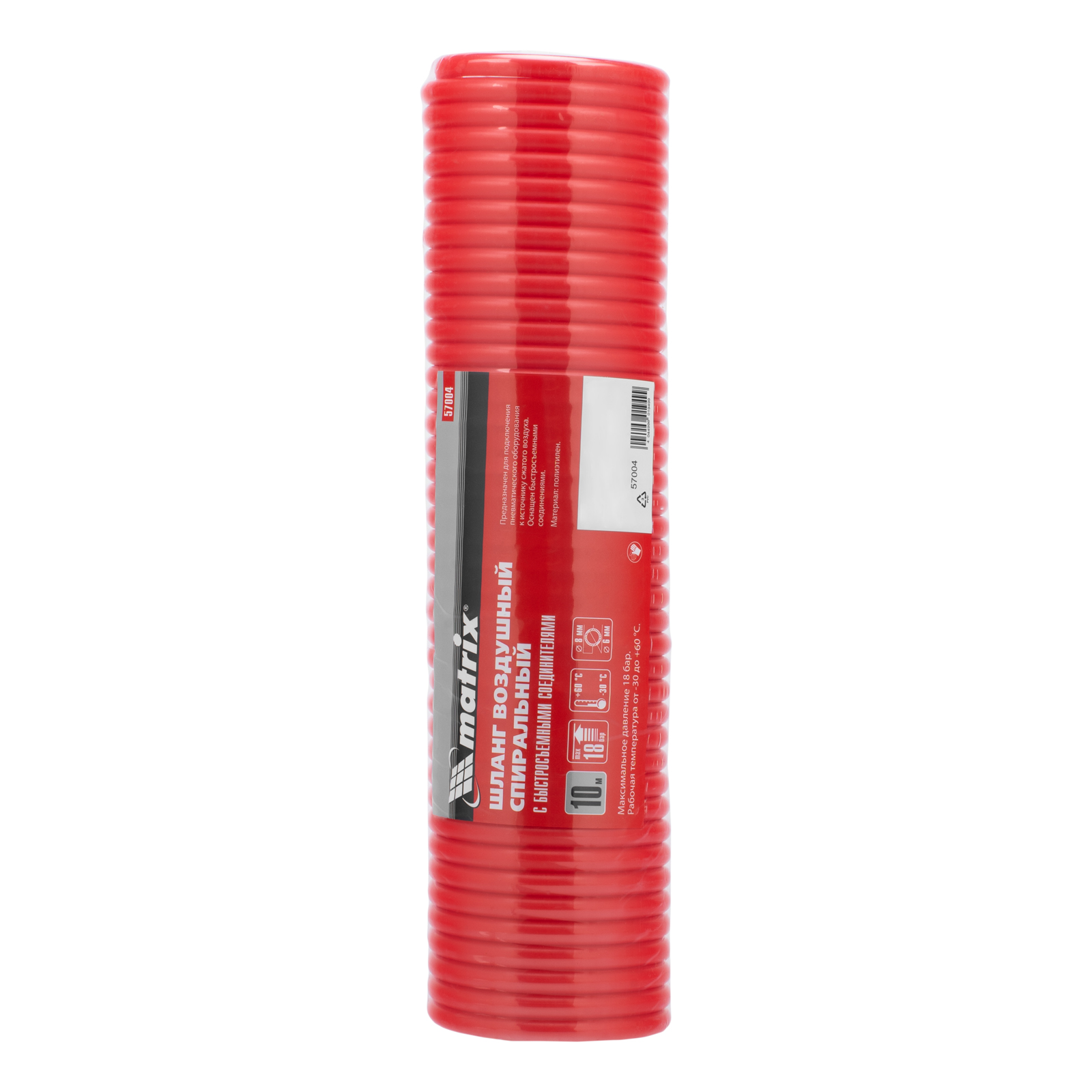 Спиральный воздушный шланг Matrix 57004 длиной 10 м, с быстросъемными соединениями, используется для подключения пневмоинструментов к компрессору. Изготовлен из легкого полиэтилена, за счет чего даже длительная работа не вызывает усталости. Имеет форму спирали, поэтому его не нужно скручивать после работы. Рукав пригодится в автосервисе, слесарной мастерской, а также во время отделочных работ.