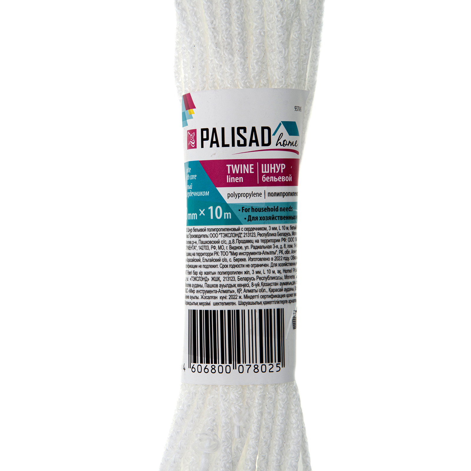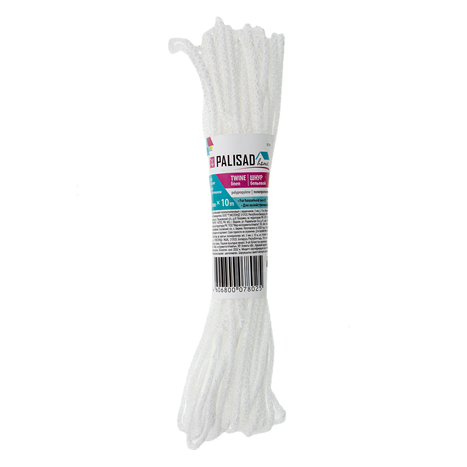 Шнур бельевой полипропиленовый с сердечником, 3 мм, L 10 м, белый, Home Palisad