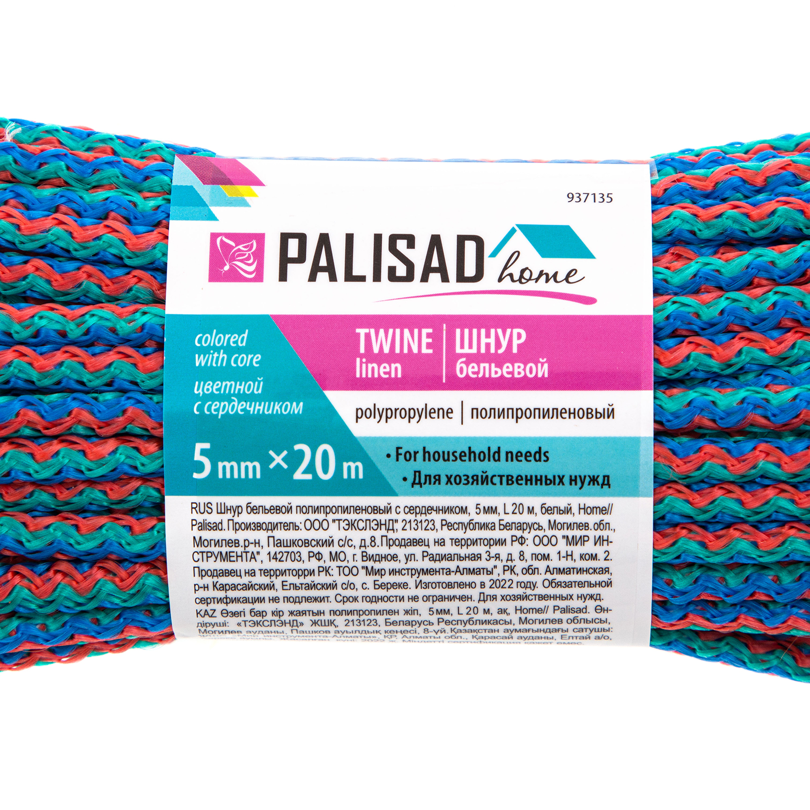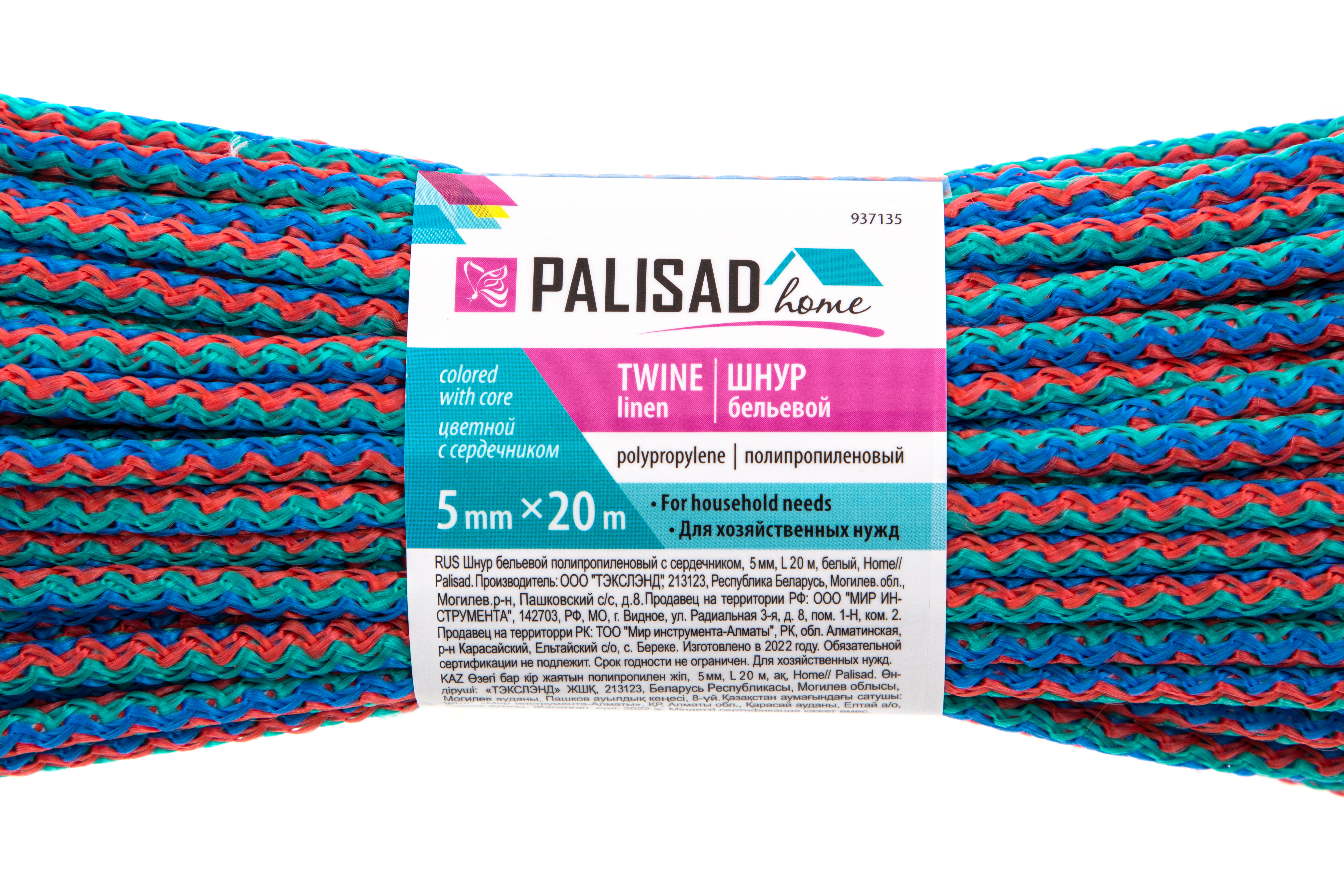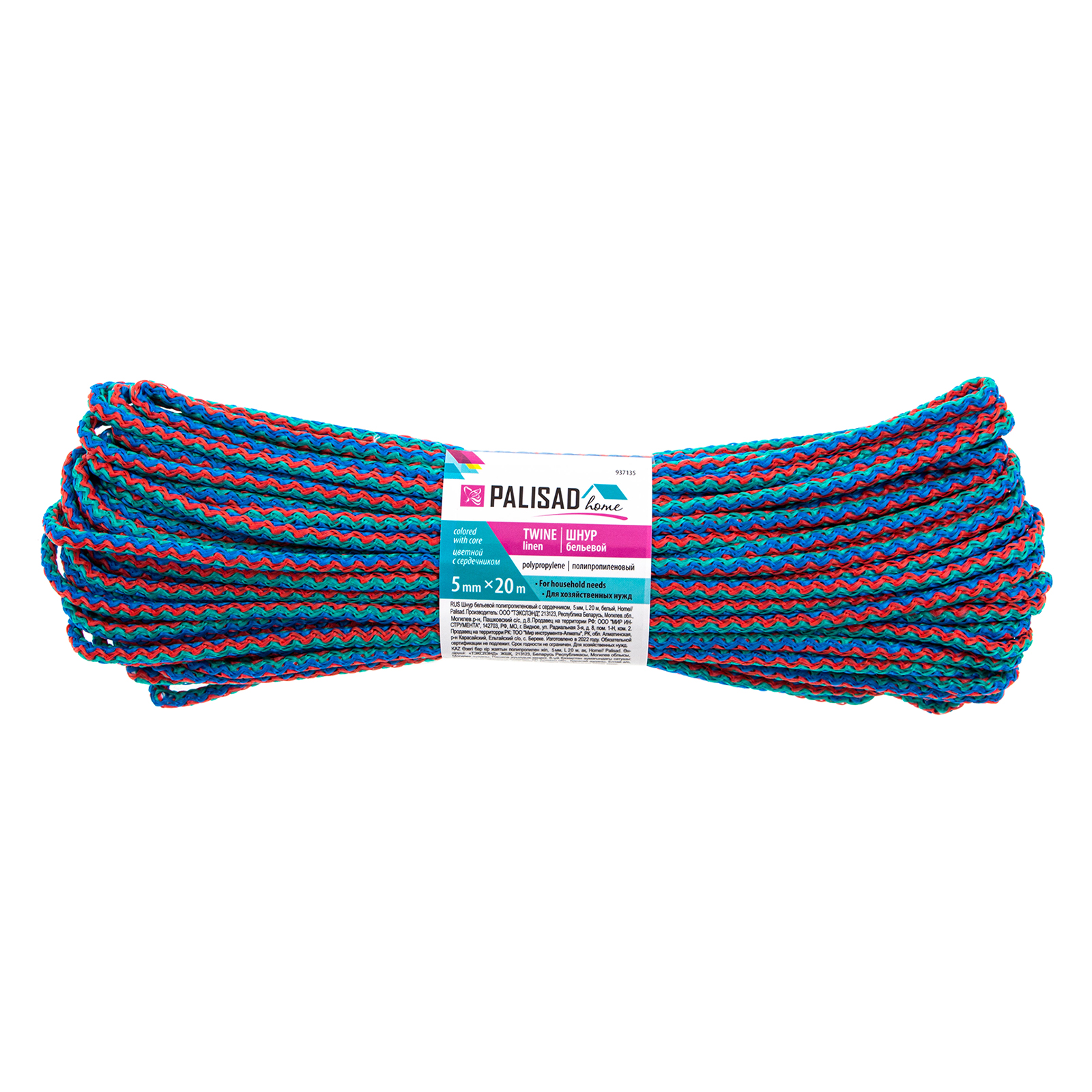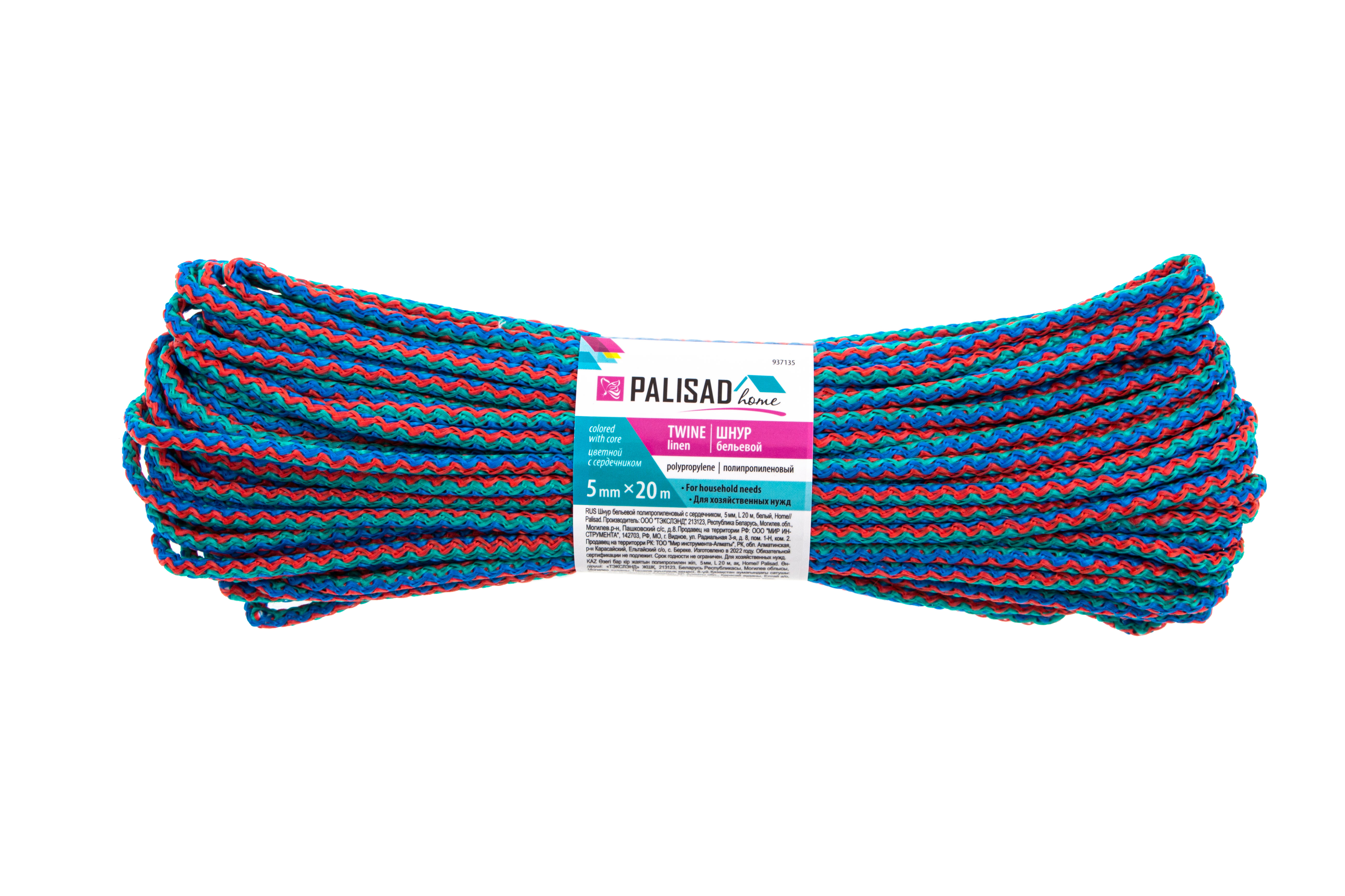Цветной полипропиленовый бельевой шнур Palisad Home 937135 с сердечником, диаметром 5 мм и длиной 20 м, используется для сушки белья, а также в качестве хозяйственной веревки в быту, на рыбалке или в походе. От обычной бельевой веревки для сушки он отличается сердечником из полипропилена, увеличивающим стойкость к нагрузкам. Шнур с полипропиленовой оплеткой выдерживает разрывную нагрузку до 70 кгс, устойчив к растяжению и не провисает под весом мокрых вещей.