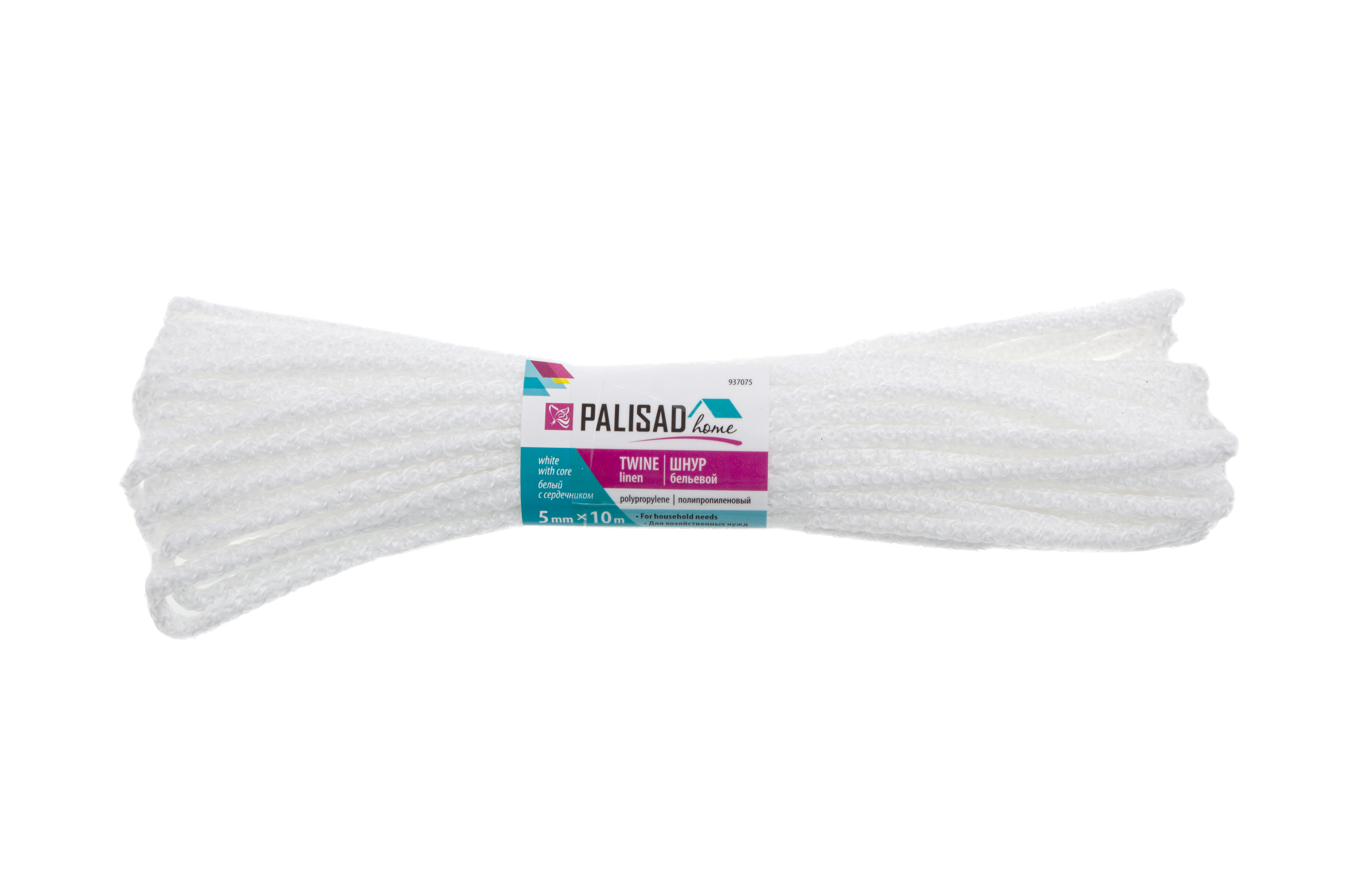 Шнур бельевой полипропиленовый с сердечником, 5 мм, L 10 м, белый, Home Palisad