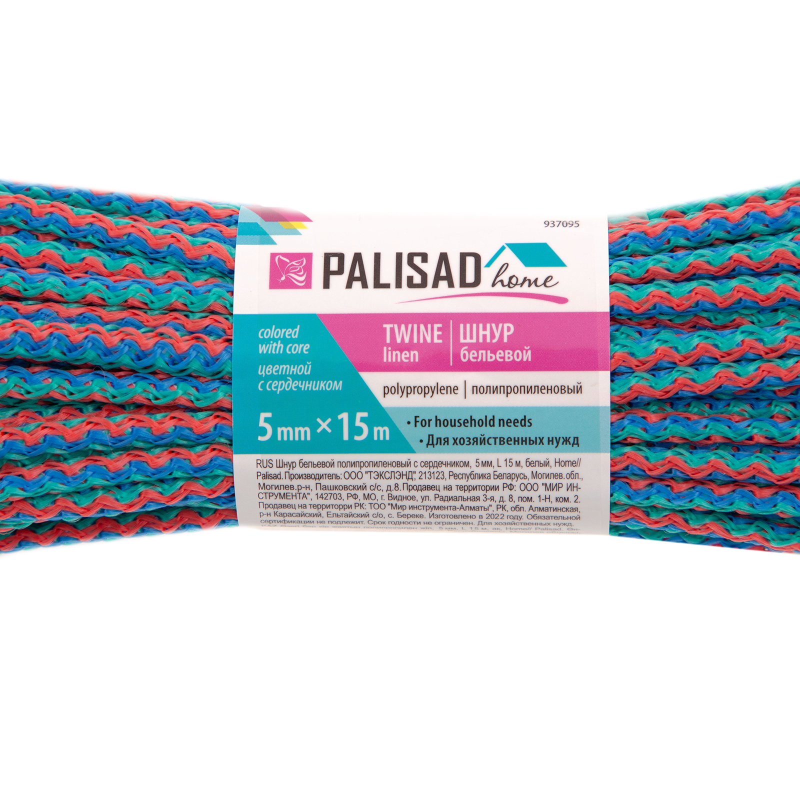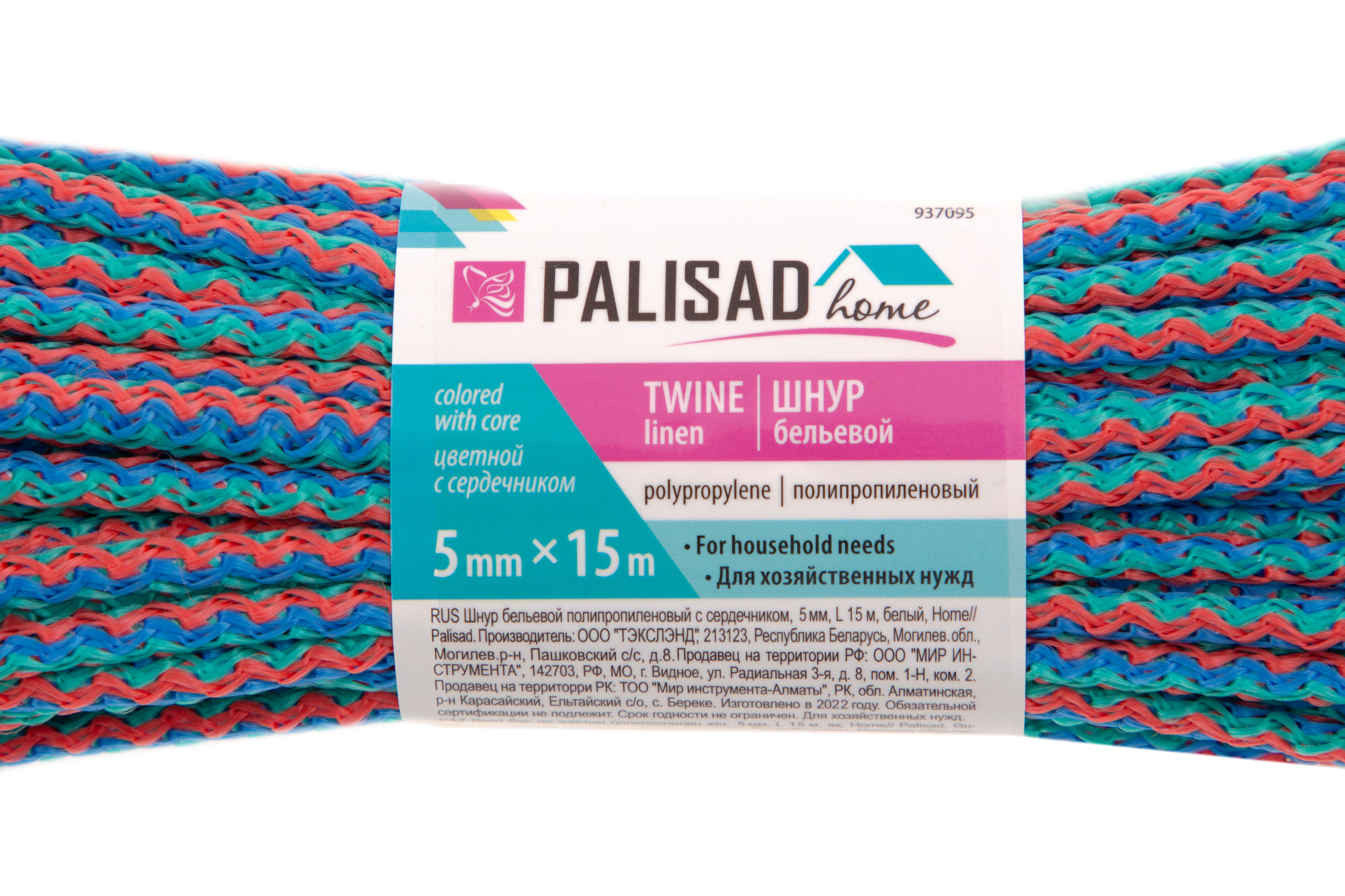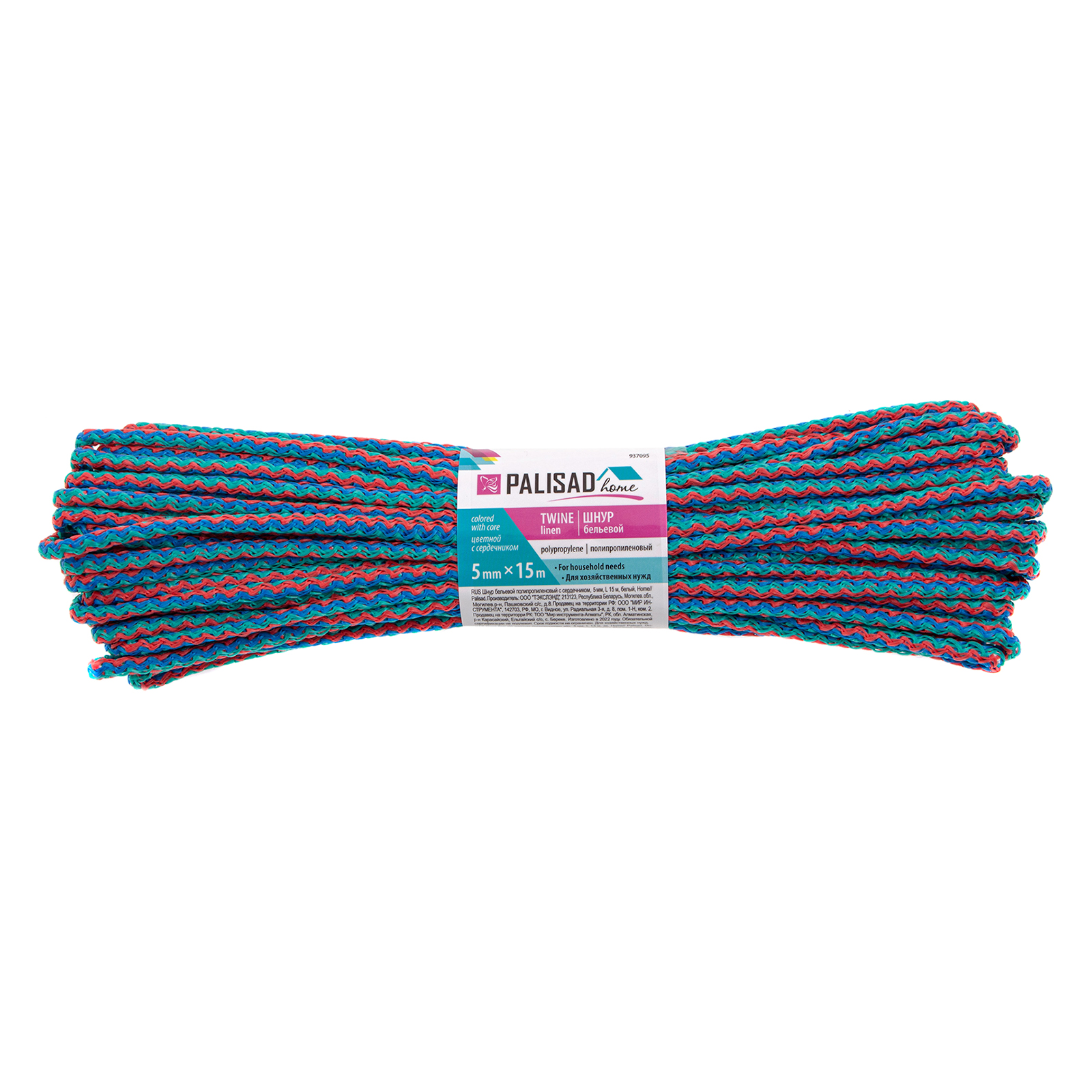 Шнур бельевой полипропиленовый с сердечником, 5 мм, L 15 м, цветной, Home Palisad в Москве