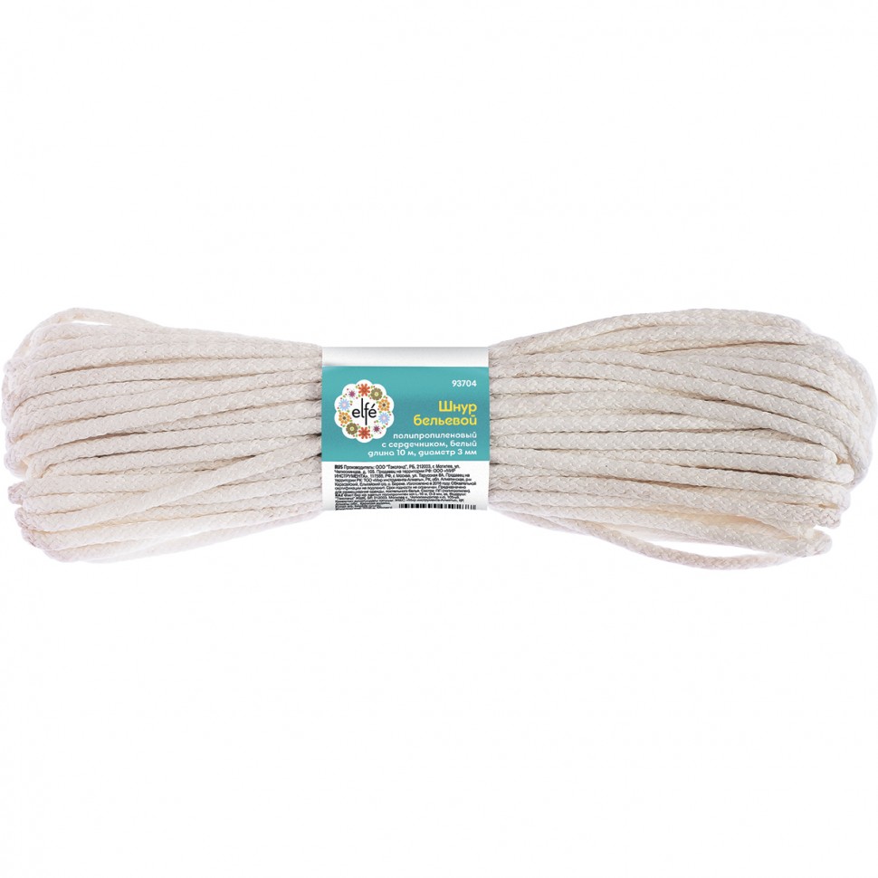 Белый полипропиленовый бельевой шнур Elfe 93705 с сердечником, диаметром 3 мм и длиной 15 м, используется для сушки белья, а также в качестве хозяйственной веревки в быту, на рыбалке или в походе. От обычной бельевой веревки его отличает сердечник из полипропилена, увеличивающий стойкость к нагрузкам. Шнур с полипропиленовой оплеткой выдерживает разрывную нагрузку до 30 кгс, устойчив к растяжению и не провисает под весом мокрых вещей.