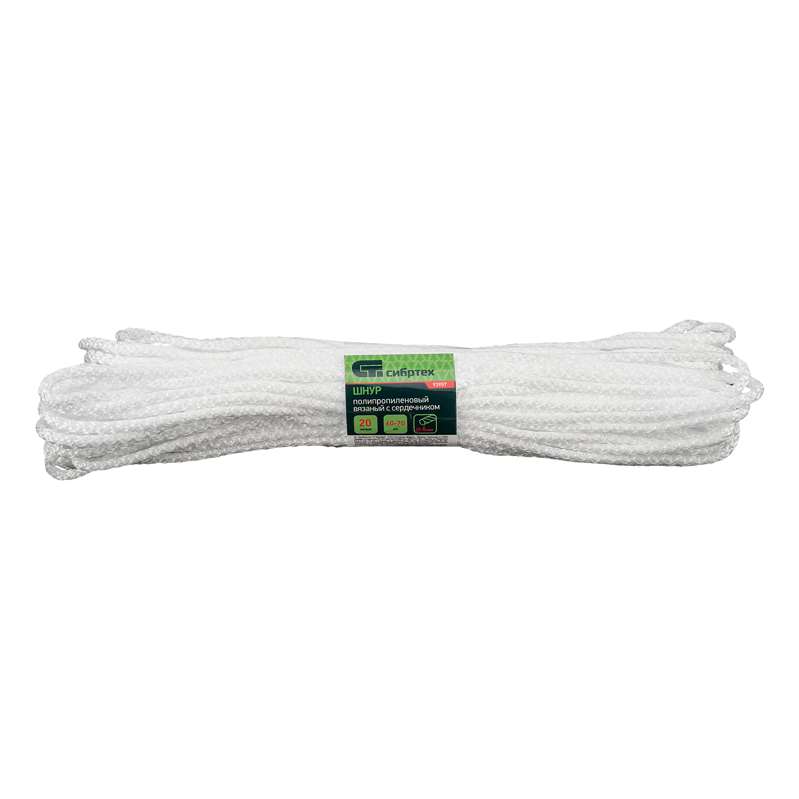Шнур вязаный полипропиленовый с серд. белый, 4 мм, L 20 м, Сибртех в Москве