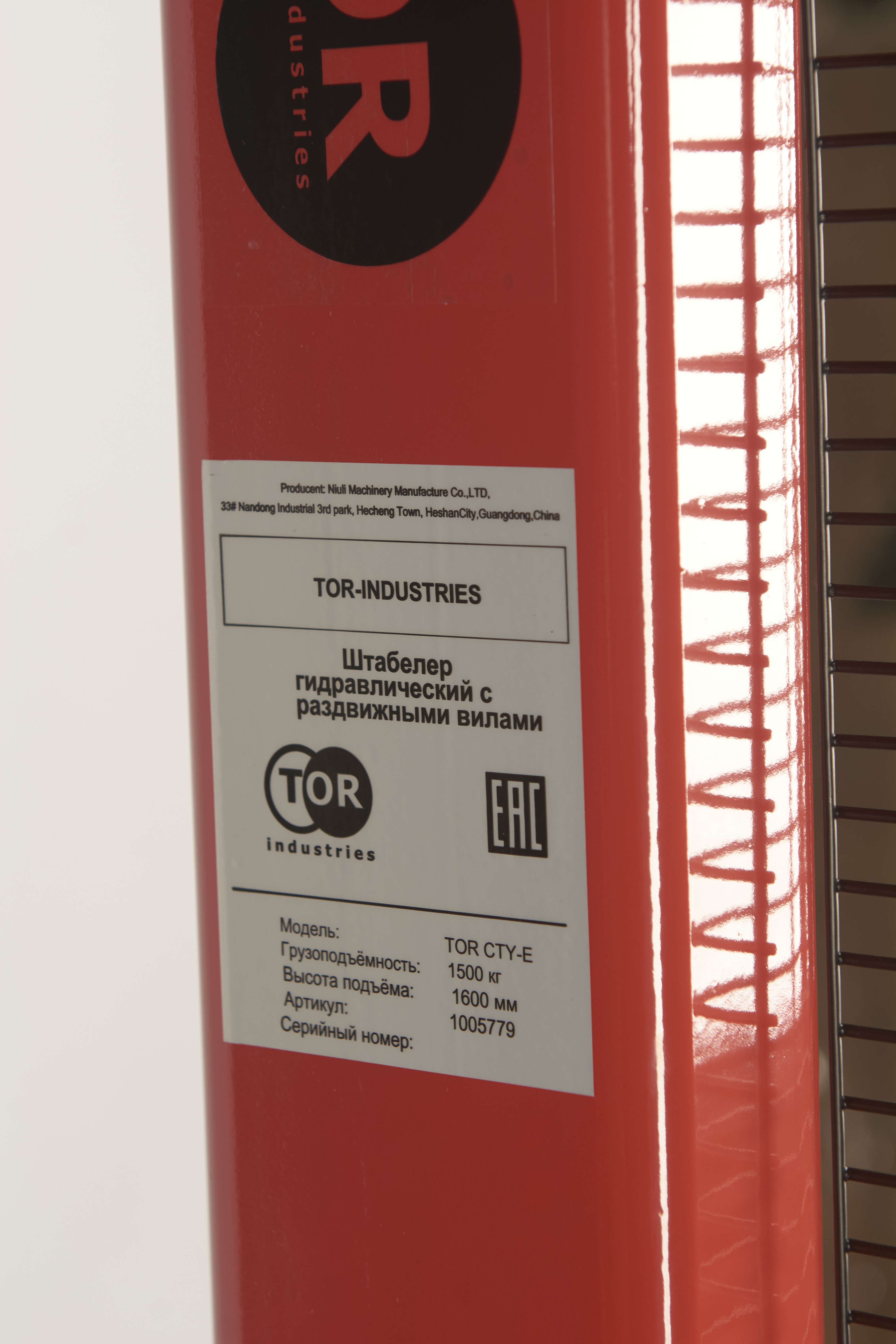 Штабелер гидравлический 1,5 т 1,6 м TOR CTY-E с раздвижными вилами в Москве