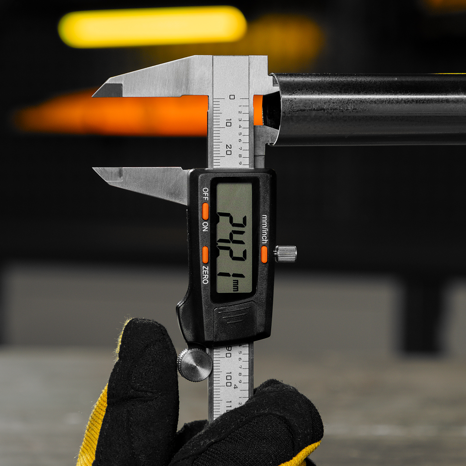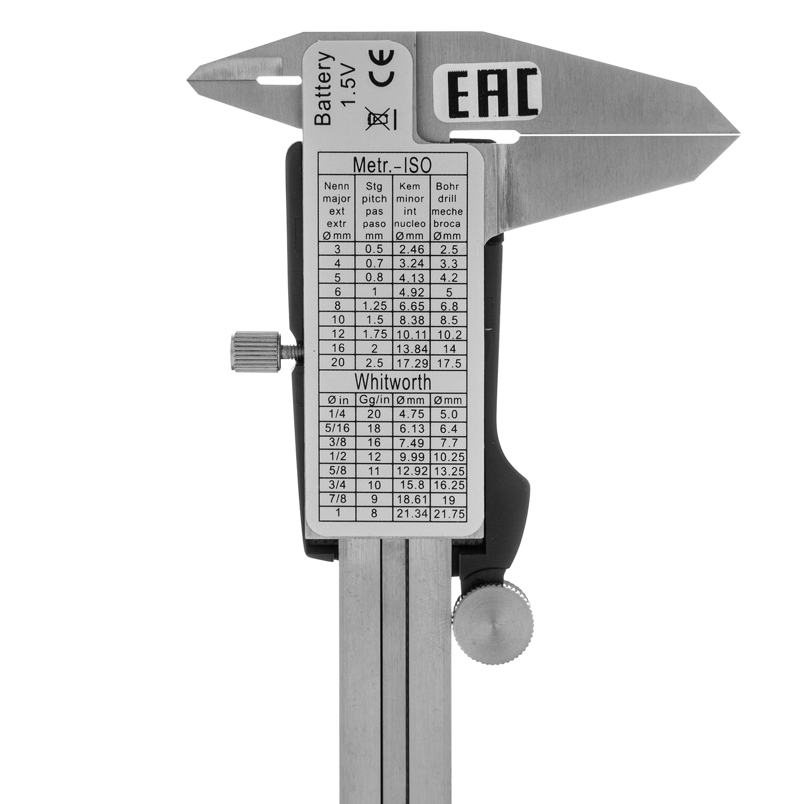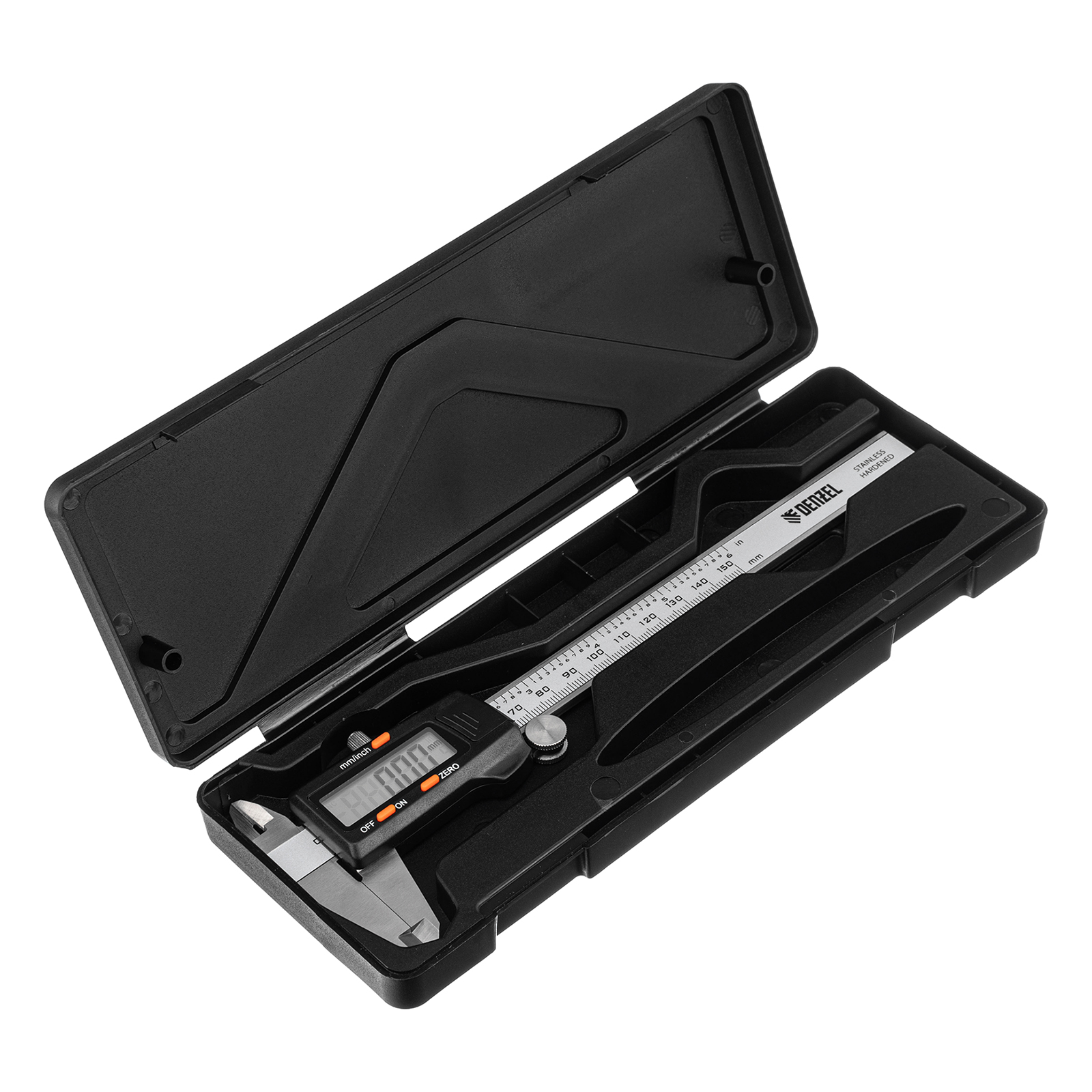 • Безопасная транспортировка и хранение — штангенциркуль упакован в прочный пластиковый кейс.