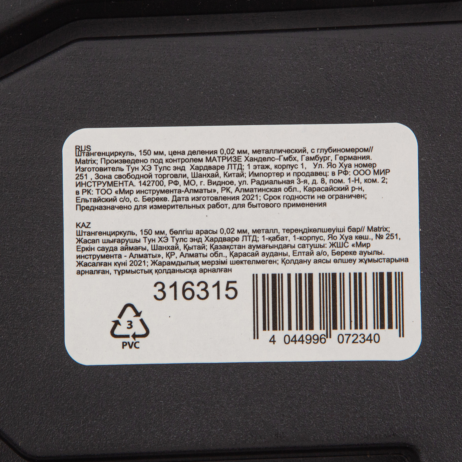 Штангенциркуль, 150 мм, цена деления 0.02 мм, металлический, с глубиномером Matrix в Москве