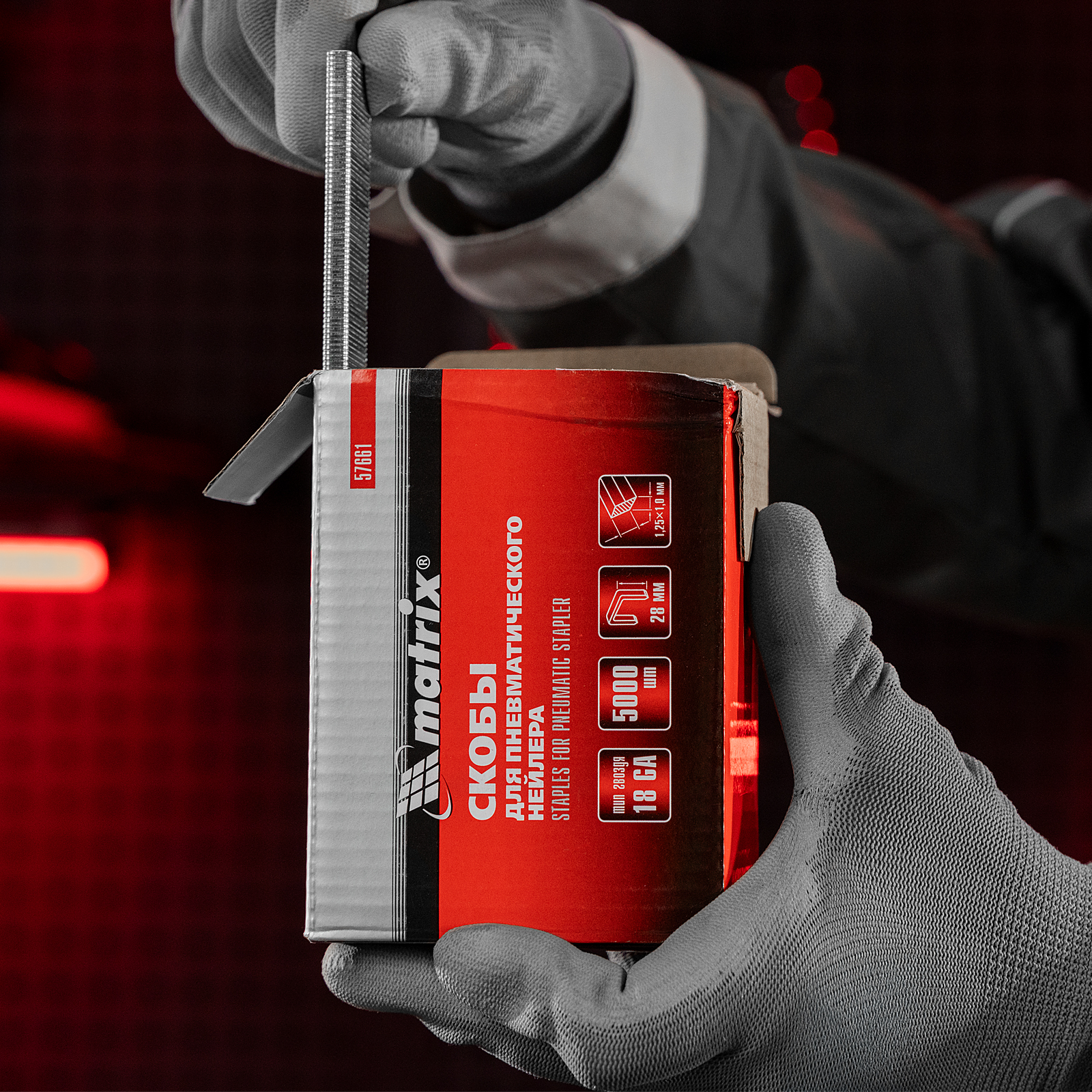 Скобы для пневматического степлера 18GA, 1.25х1 мм длина 28 мм ширина 5,7 мм, 5000 шт Matrix в Москве