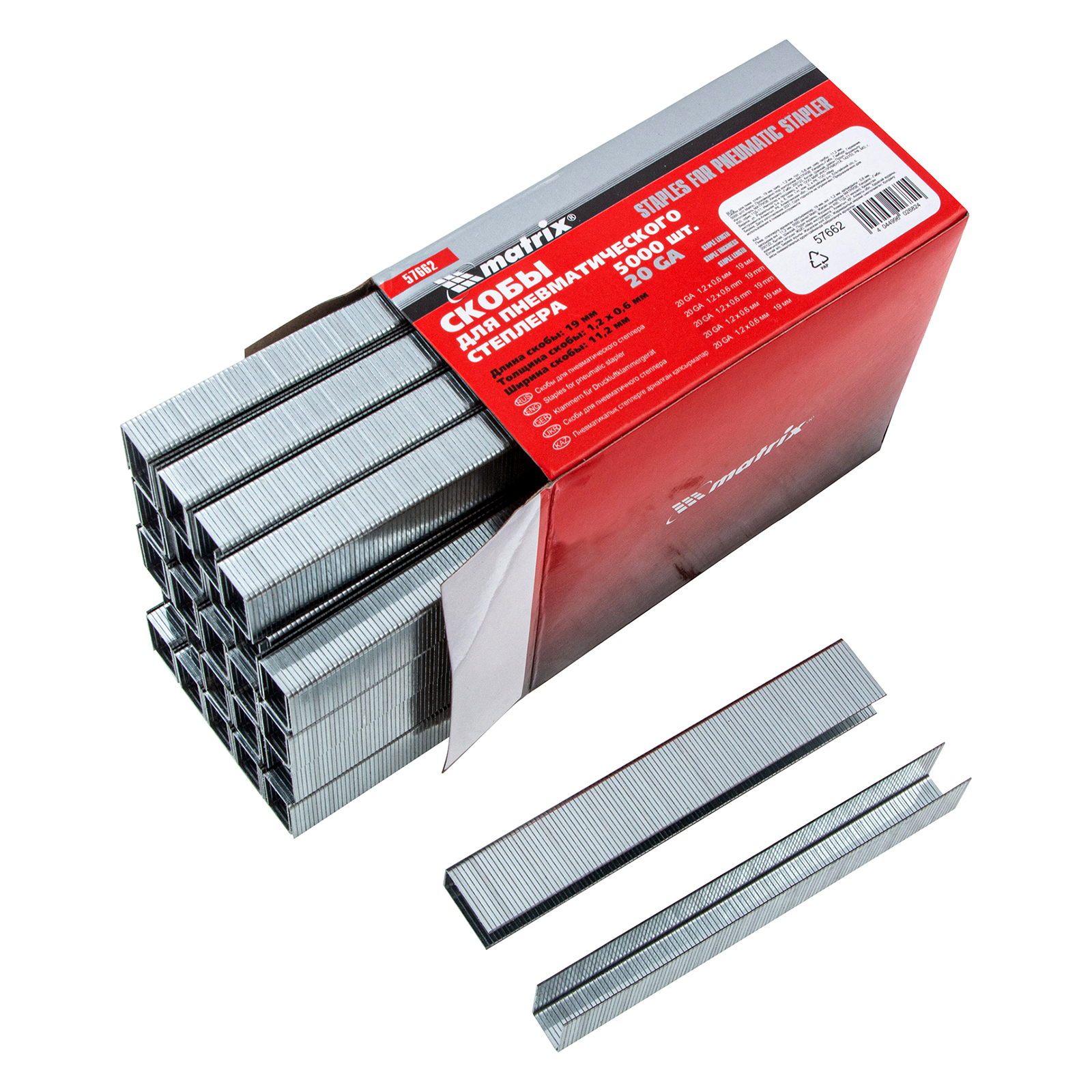 Скобы для пневматического степлера, 19 мм, ширина 1.2 мм, толщина 0.6 мм, ширина скобы 11.2 мм, 5000 шт Matrix в Москве