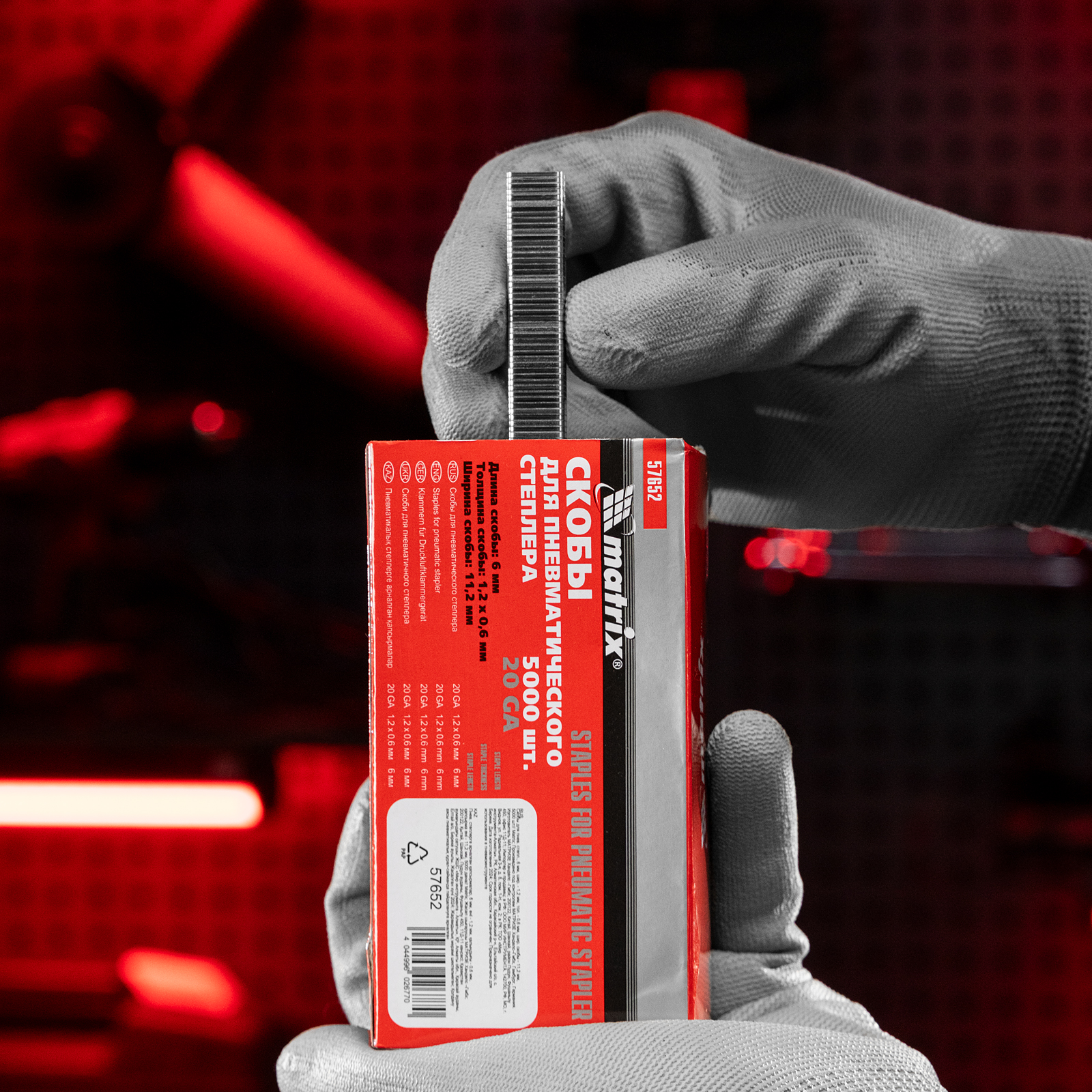 Скобы для пневматического степлера, 6 мм, ширина 1.2 мм, толщина 0.6 мм, ширина скобы 11.2 мм, 5000 шт Matrix в Москве