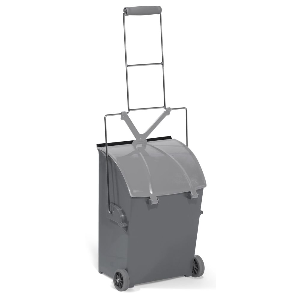 Крышка удерживает мусор, предотвращая высыпание отходов. Оборудован двумя 60-мм колесами на прорезиненной основе.
