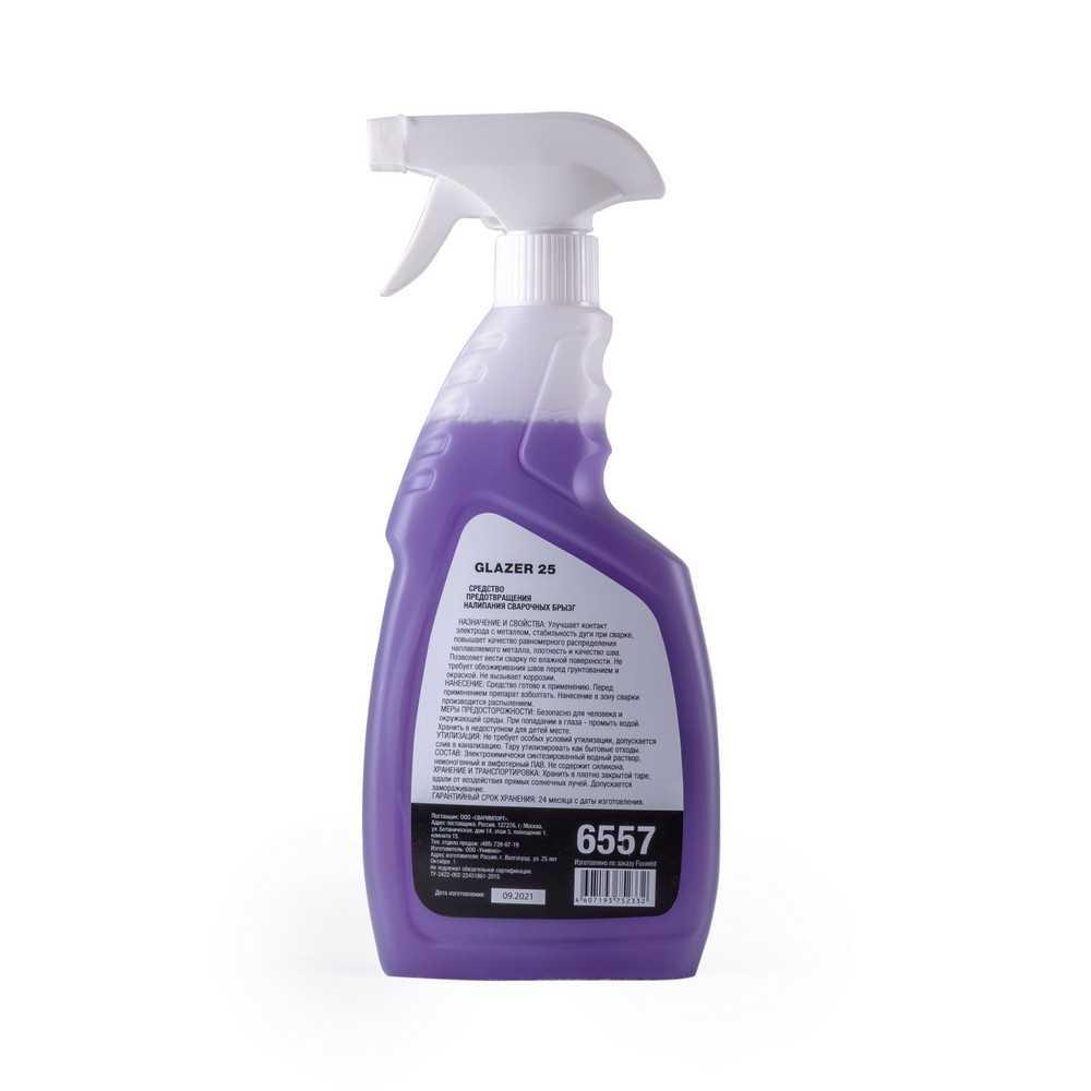 Средство для предотвращения налипания сварочных брызг GLAZER 25 защищает поверхности изделия от брызг расплавленного металла при проведении сварочных работ, а также применяется для защиты стекла, керамики, пластмасс и других поверхностей от раскалённой стружки (искр) при работе с зачистными и режущими инструментами типа УШМ.