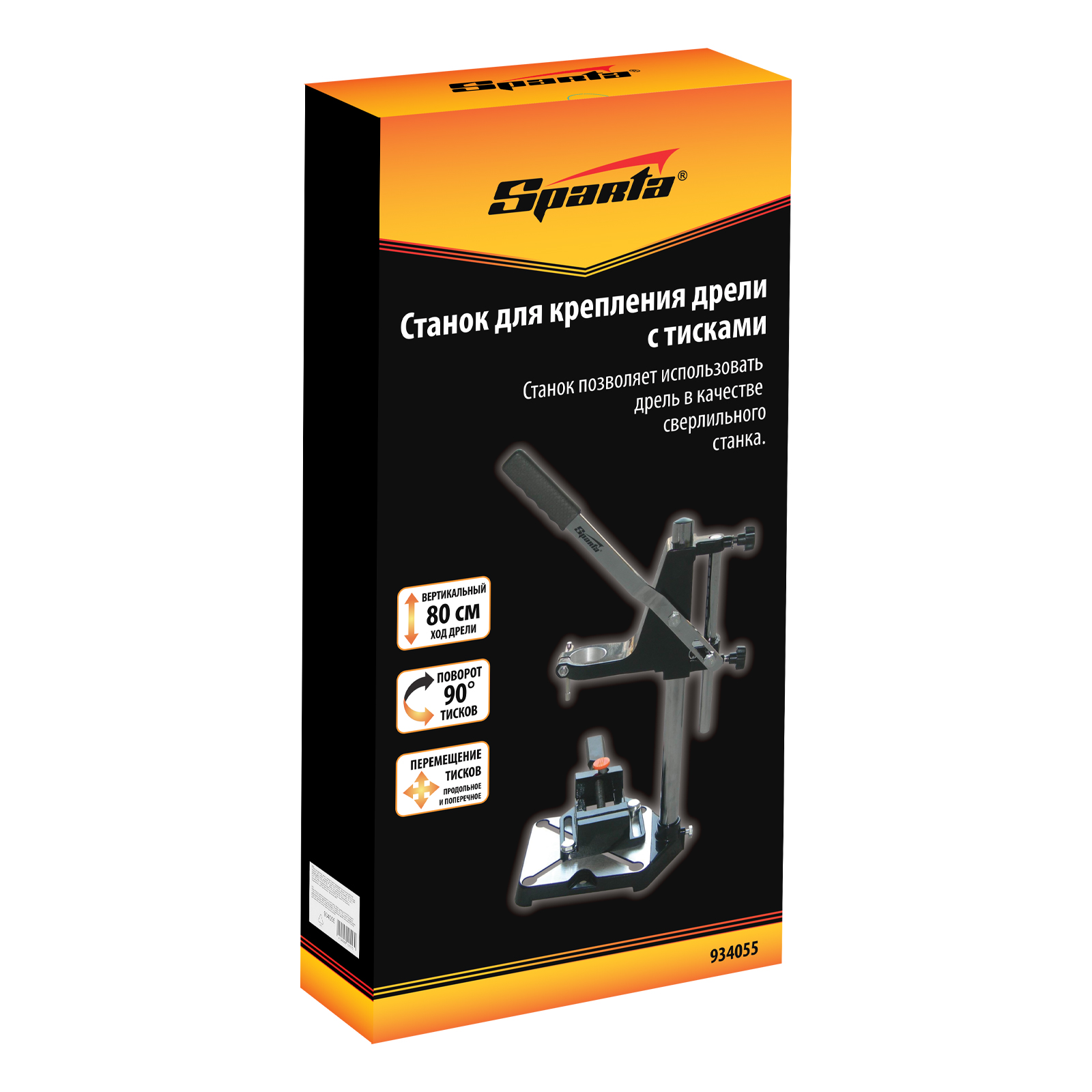 Станок Sparta 934055 с тисками позволяет закрепить дрель в вертикальном положении и использовать ее в качестве сверлильного станка. Он существенно облегчает работу с дрелью, позволяет использовать ее для фрезерования, а также способствует увеличению скорости и точности работы.