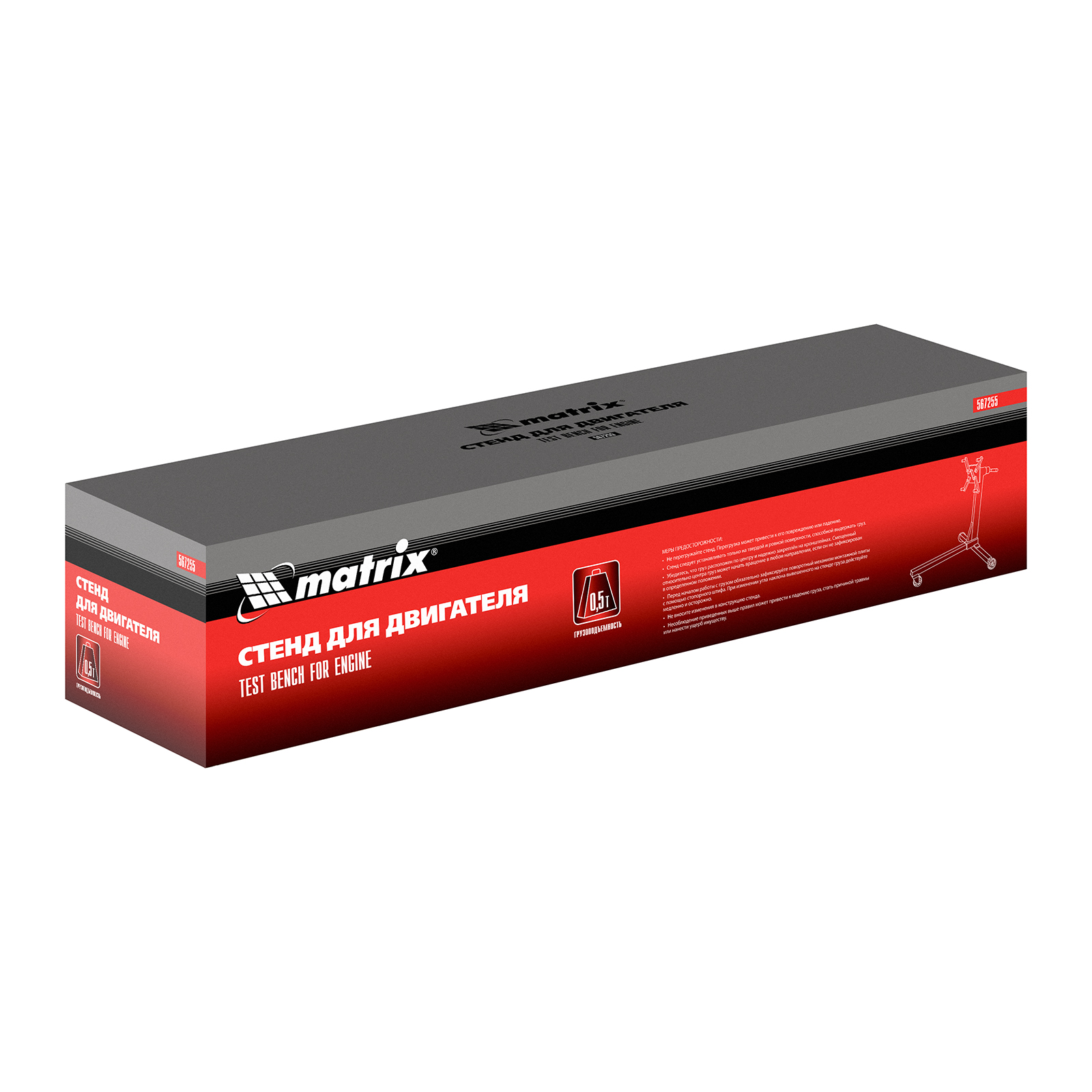 Стенд Matrix 567255 грузоподъемностью 500 кг (1250 Lbs) используется в автомастерских для осуществления ремонта и диагностики двигателя и его транспортировки внутри помещения. Благодаря конструкции с кронштейнами и регулируемыми захватами стенд-кантователь можно использовать для вывешивания практически любых двигателей массой до 500 кг. Для повышения безопасности работы рекомендуется использовать стенд со стойкой и краном.