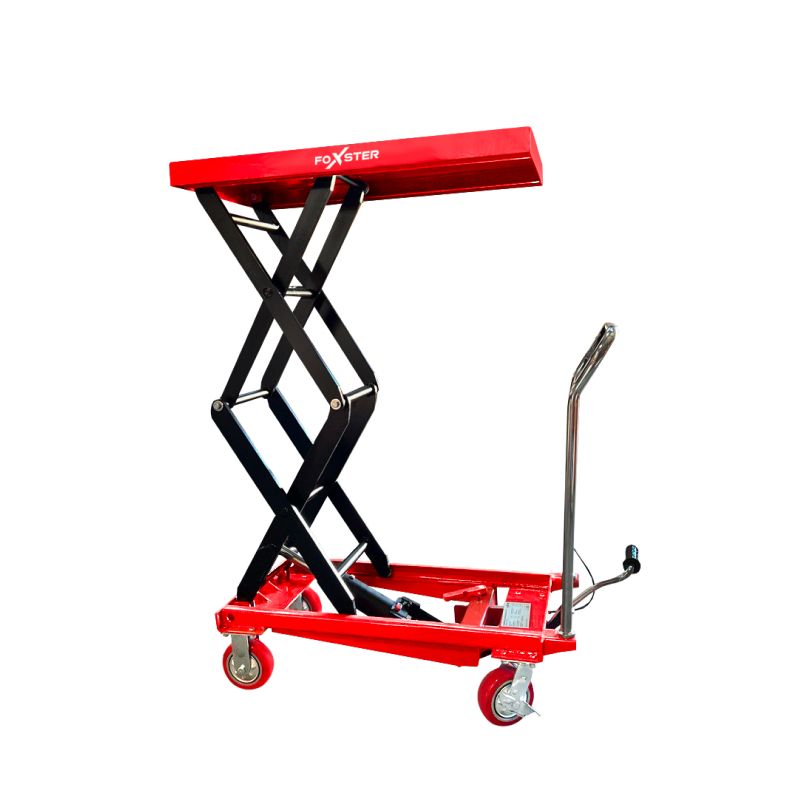 FOXSTER TFD 35 подходит для эксплуатации как внутри, так и снаружи помещения. Поворотные колеса со стороны ручки снабжены тормозным механизмом, предотвращающим произвольные откаты стола при его эксплуатации. Надежный гидроцилиндр, качественная порошковая окраска и применение только высококачественной стали при производстве оборудования обеспечит долгий срок службы техники.