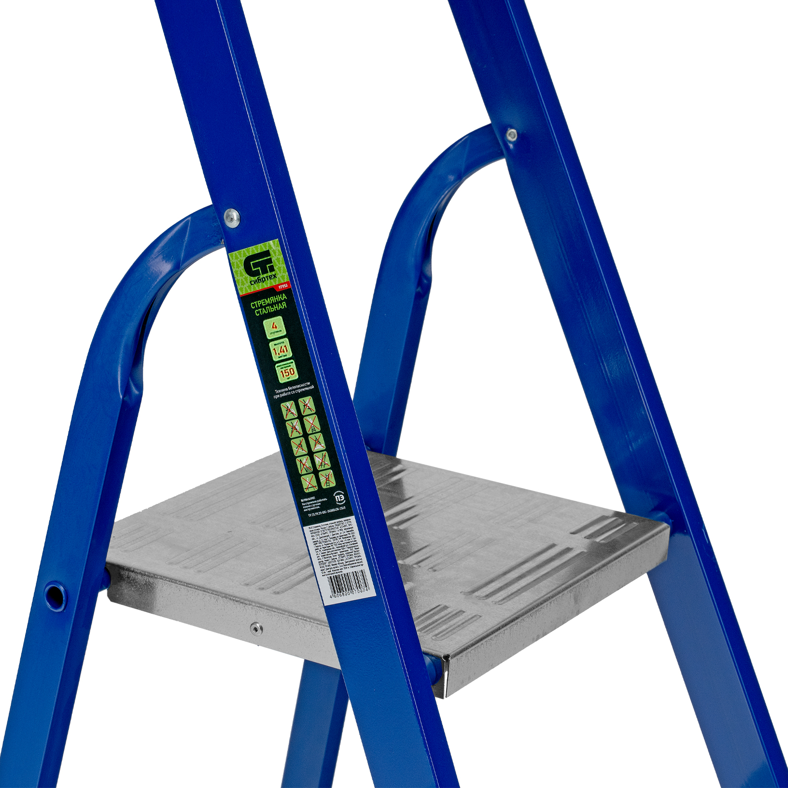 Стремянка, 4 ступени, стальной профиль, алюминиевые ступени Сибртех в Москве