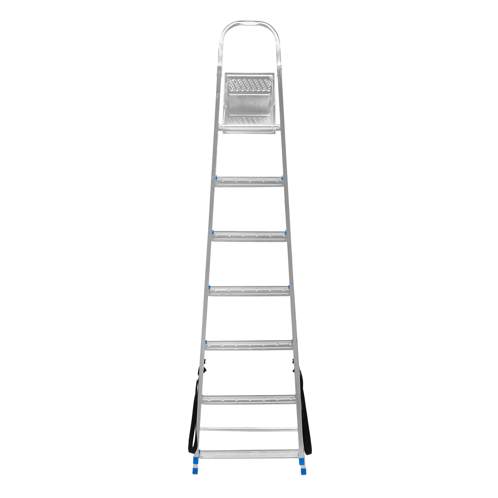 - Простая установка — на верхней площадке предусмотрены специальные зацепы для фиксации стремянки в разложенном состоянии.