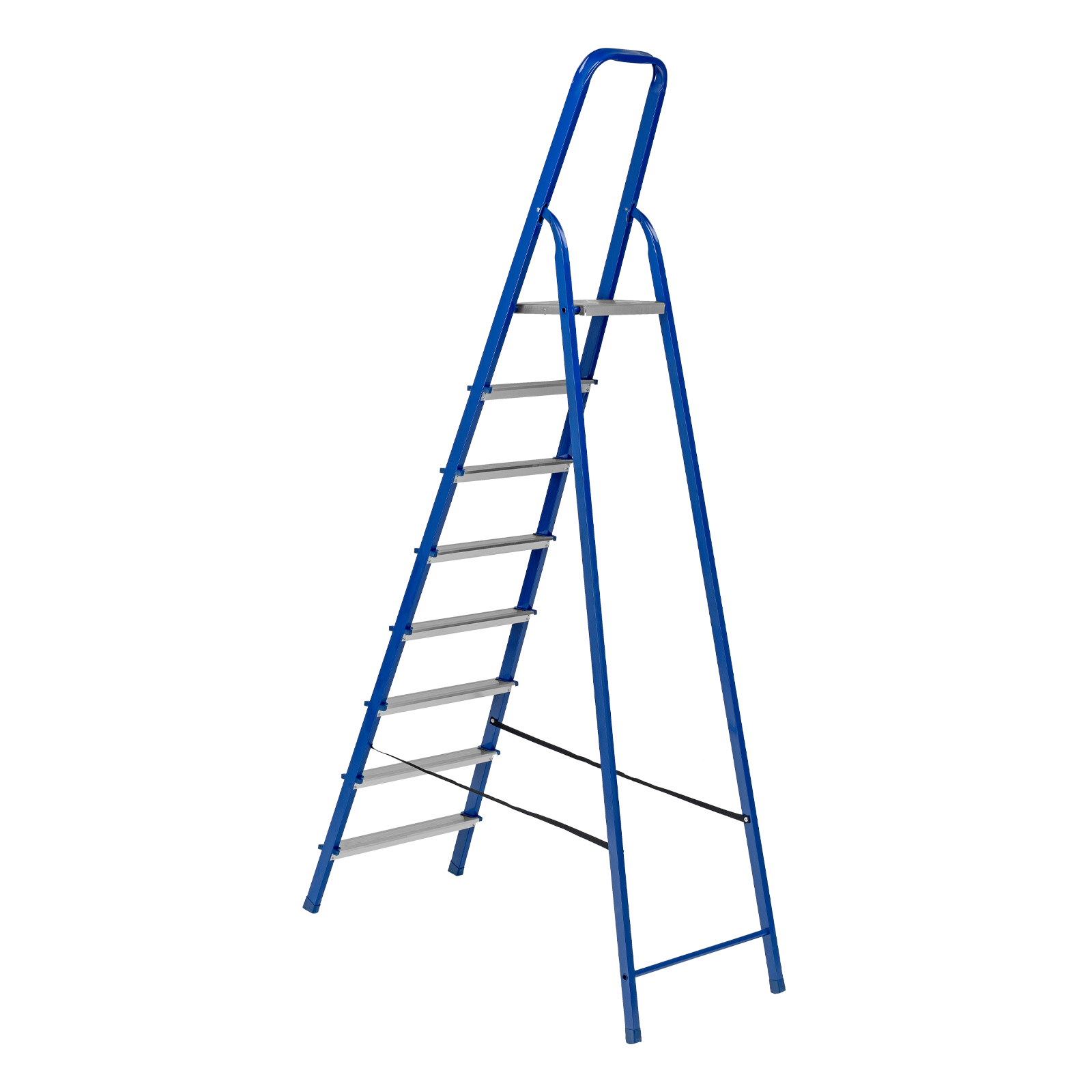 Стремянка Сибртех 97958 со стальным профилем и 8 ступенями, 7 из которых алюминиевые, упрощает доступ к предметам, расположенным на антресолях, шкафах, высоких полках. Также будет полезна для проведения отделочных и монтажных работ. Лестница обладает высокой прочностью при весе 8,5 кг и выдерживает нагрузку до 150 кг. Площадка находится на высоте 166,6 см от опорной поверхности, рабочая высота стремянки составляет 366,6 см (при среднем росте пользователя 170 см).