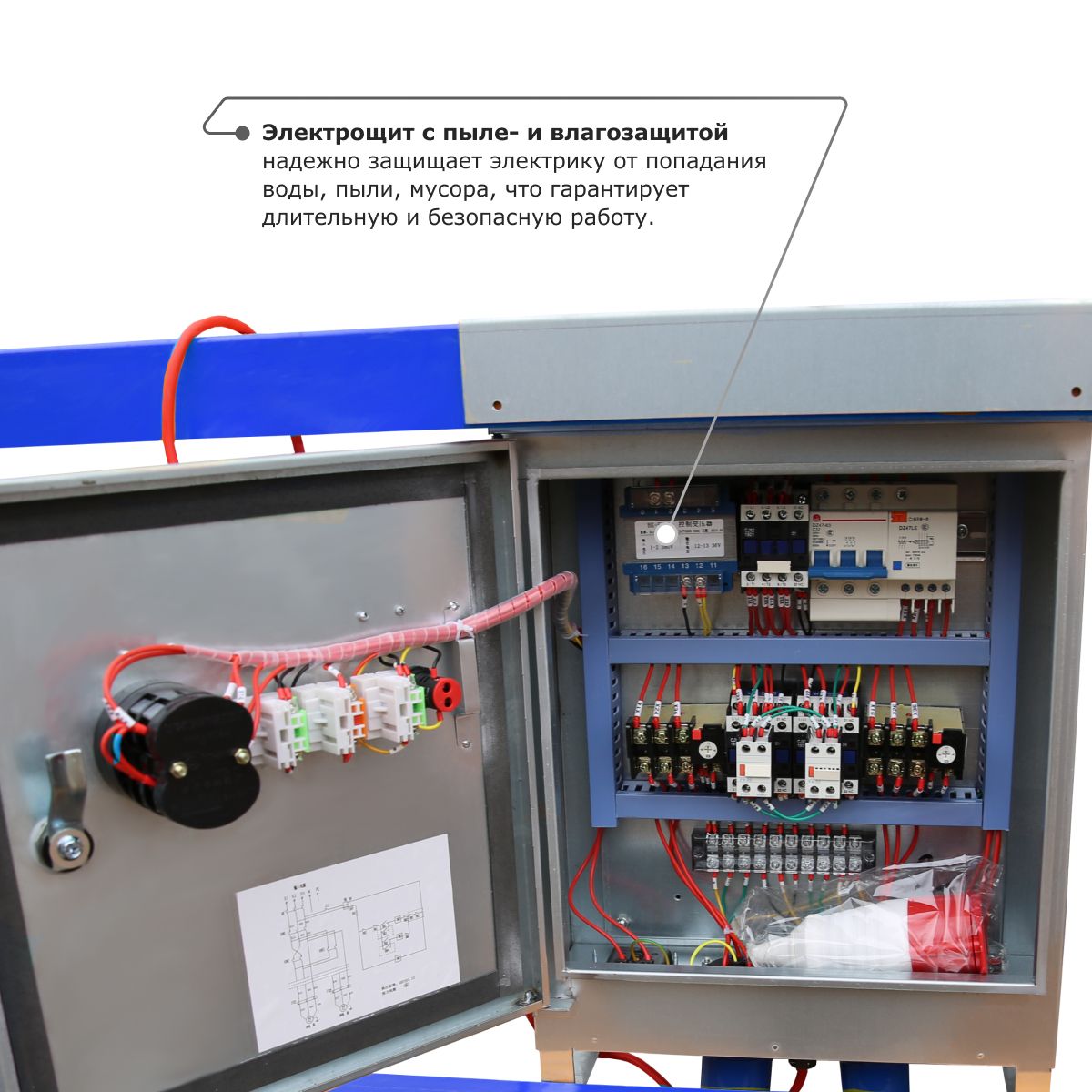 - Электрощит с пыле- и влагозащитой надежно защищает электрику от попадания воды, пыли, мусора, что гарантирует длительную и безопасную работу.