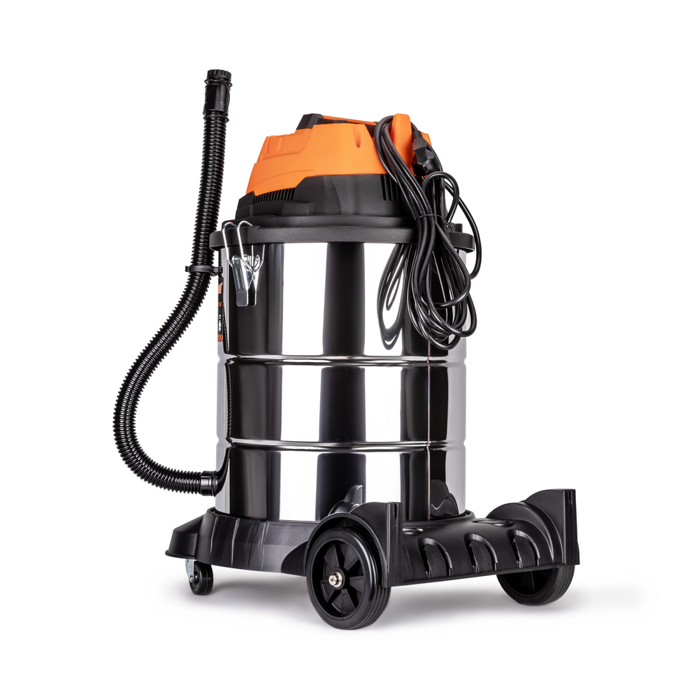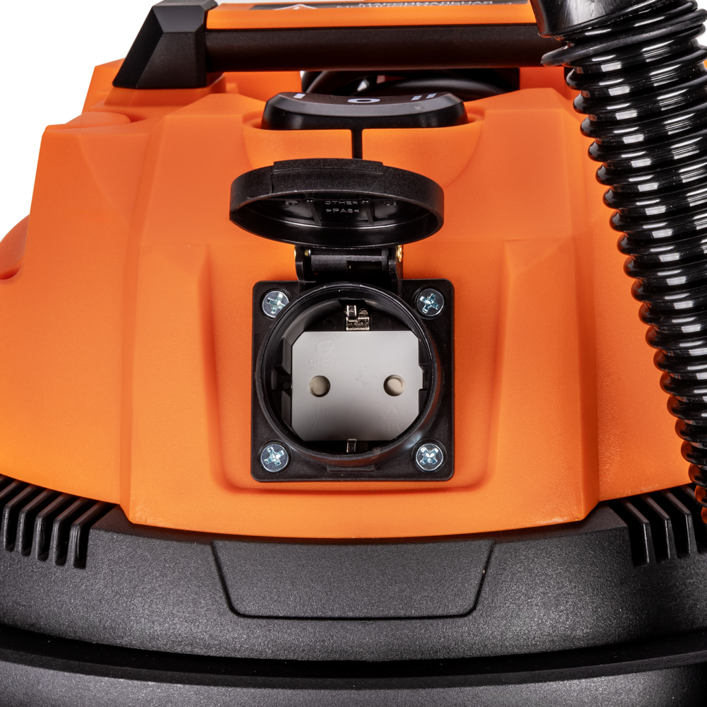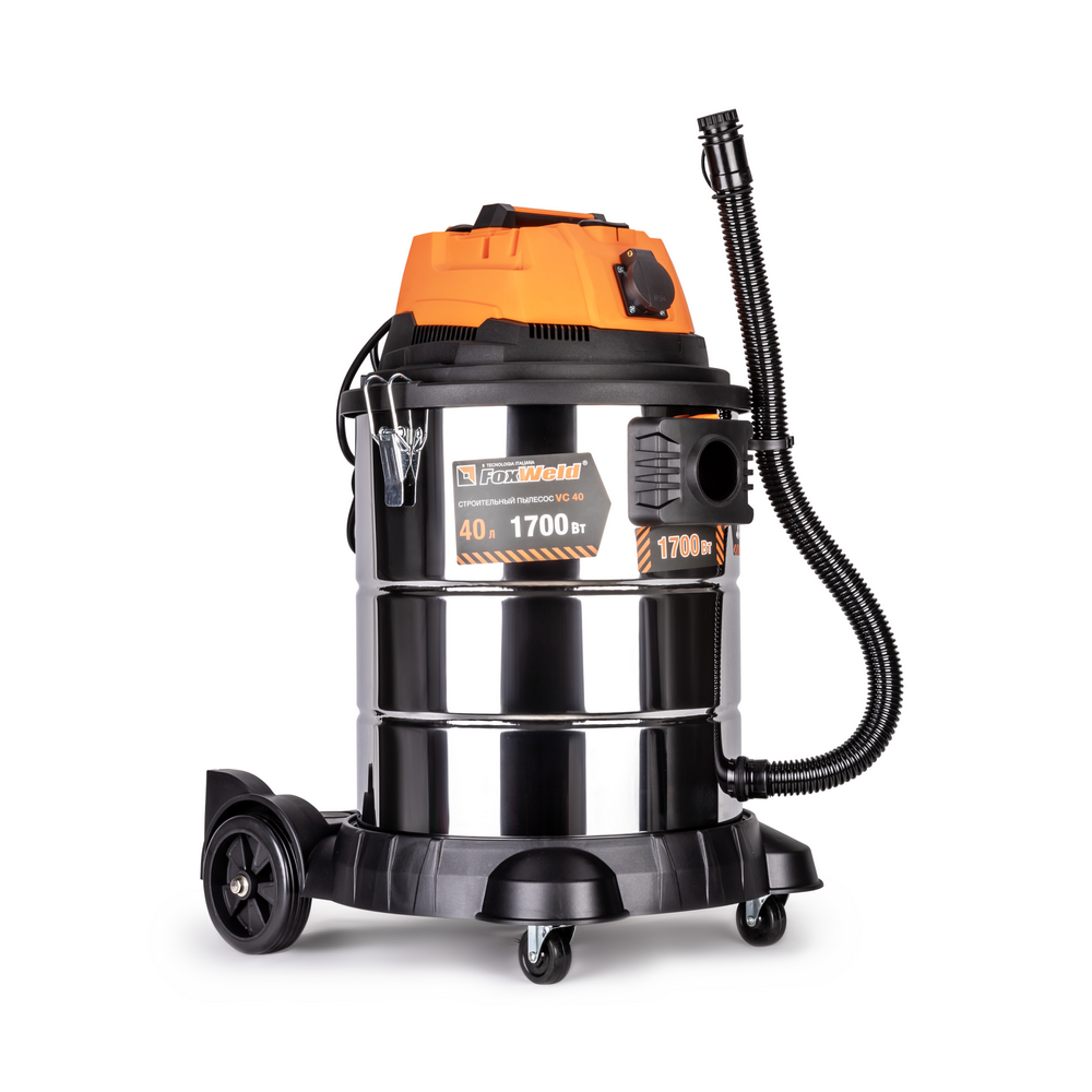 Строительный пылесос FOXWELD VC-40 отлично подходит для уборки после проведения ремонтных и строительных работ. Модель VC-40 используется для сбора сухого и влажного мусора. Это могут быть не только бытовые загрязнения, но и пыль класса М – частицы извести, мела, пыль от меди, жести, никеля, древесины. Мощная функция обдува позволяет очистить рабочее место от опилок, стружки, строительной пыли, сдуть листву с дорожек и даже прочистить водосток или канализацию. Строительный пылесос также позволяет эффективно собирать негорючую жидкость с любой поверхности, а щелевая насадка облегчает уборку узких участков. Розетка «Синхро» обеспечивает автоматическое включение пылесоса после запуска подключённого инструмента. Корпус пылесоса выполнен из нержавеющей стали, устойчив к механическим воздействиям и имеет долгий срок службы. Металлические замки надёжно закрепляют крышку на корпусе.РОЗЕТКА СИНХРО: Строительный пылесос оборудован специальной розеткой «Синхро». После запуска подключённого инструмента (УШМ, перфоратор и т.д.) пылесос автоматически включается в режиме всасывания, что значительно сокращает время уборки помещения после окончания рабочего процесса.БЫСТРАЯ ОЧИСТКА HEPA-ФИЛЬТРА: С помощью специальной кнопки можно быстро очистить фильтр HEPA c высоким фильтрующим классом H13, не открывая корпус пылесоса.СБОР НЕГОРЮЧЕЙ ЖИДКОСТИ: Специальная функция сбора жидкости предназначена для эффективной уборки растворов, суспензий и воды с любой поверхности.ФУНКЦИЯ ОБДУВА: Функция обдува позволяет очистить рабочее место и поверхности от опилок, стружки, строительной пыли, сдуть листву с дорожек, прочистить водосток или канализацию.КОНТРОЛЬ ЗАПОЛНЕНИЯ КОНТЕЙНЕРА: На определённом уровне заполнения бака происходит автоматическая остановка всасывания для предотвращения попадания жидкости, грязи, пыли и другого мусора в двигатель пылесоса.ПРЕИМУЩЕСТВА:Тканевый и губчатый фильтры, а также HEPA-фильтр уже установлены в пылесосеГубчатый (поролоновый) фильтр защищает двигатель пылесоса от загрязнения и влаги в виде капель и пены при влажной уборкеТканевый промежуточный фильтр увеличенной площади улучшает фильтрацию воздушного потока и снижает нагрузку на остальные элементы фильтрующей системыВсе аксессуары можно хранить непосредственно на самом пылесосе – насадки и части телескопической трубы вставляются в специальные отверстия на корпусеСпециальный держатель для кабеля предотвращает спутывание проводаМеталлическая всасывающая труба надёжна при эксплуатации в сложных рабочих условияхСливной шланг упрощает удаление жидкости из бакаБак из нержавеющей стали устойчив к механическим воздействиямМеталлические замки бака надёжно закрепляют крышку на корпусеЩётка «пол/ковёр» с клавишей переключенияЩелевая насадка для сбора пыли в труднодоступных местахФУНКЦИОНАЛЬНЫЕ ОСОБЕННОСТИ:HEPA ФИЛЬТР: HEPA фильтр c высоким фильтрующим классом H13 является частью многоступенчатой очистки воздуха пылесоса и гарантирует эффективную защиту двигателя при максимальном сохранении силы всасывания. При загрязнении фильтрующий материал можно промыть под струёй тёплой воды.ГУБЧАТЫЙ ФИЛЬТР: Дополнительный губчатый фильтр защищает двигатель пылесоса от загрязнения и попадания в него брызг во время всасывания жидкостей.КОМПЛЕКТАЦИЯ: Строител