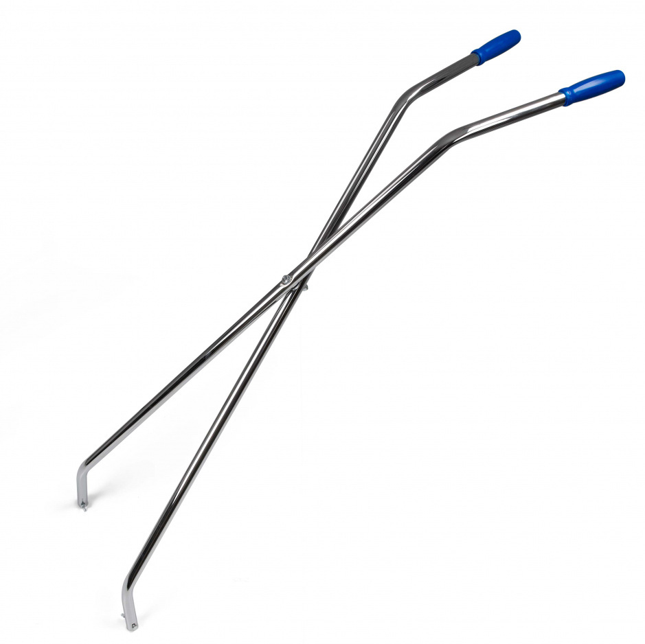 Рукоятка для V-образной швабры. Оборудована креплением, соединяющим две ее части, трубки изготовлены из хромированной стали.