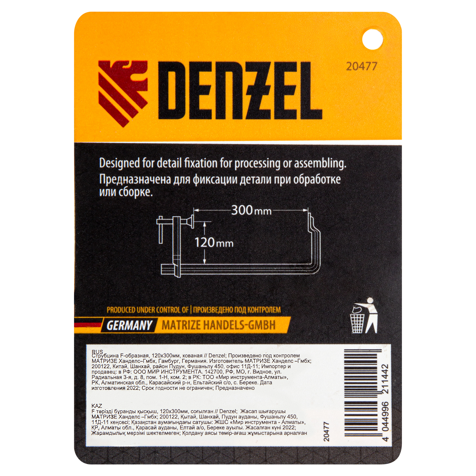Струбцина F-образная, 120x300мм, кованая Denzel в Москве
