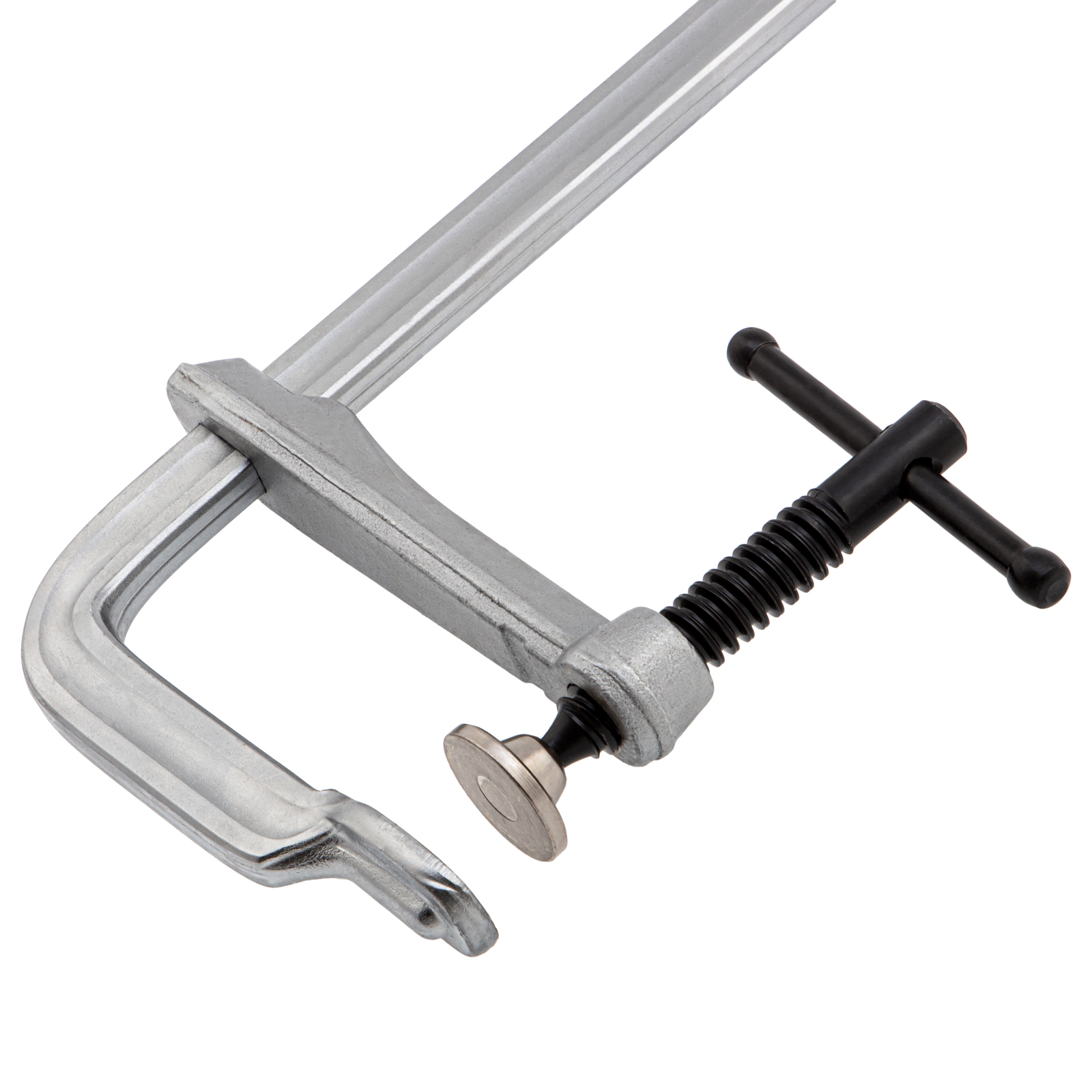 - Хромированное покрытие надежно защищает струбцину от коррозии.