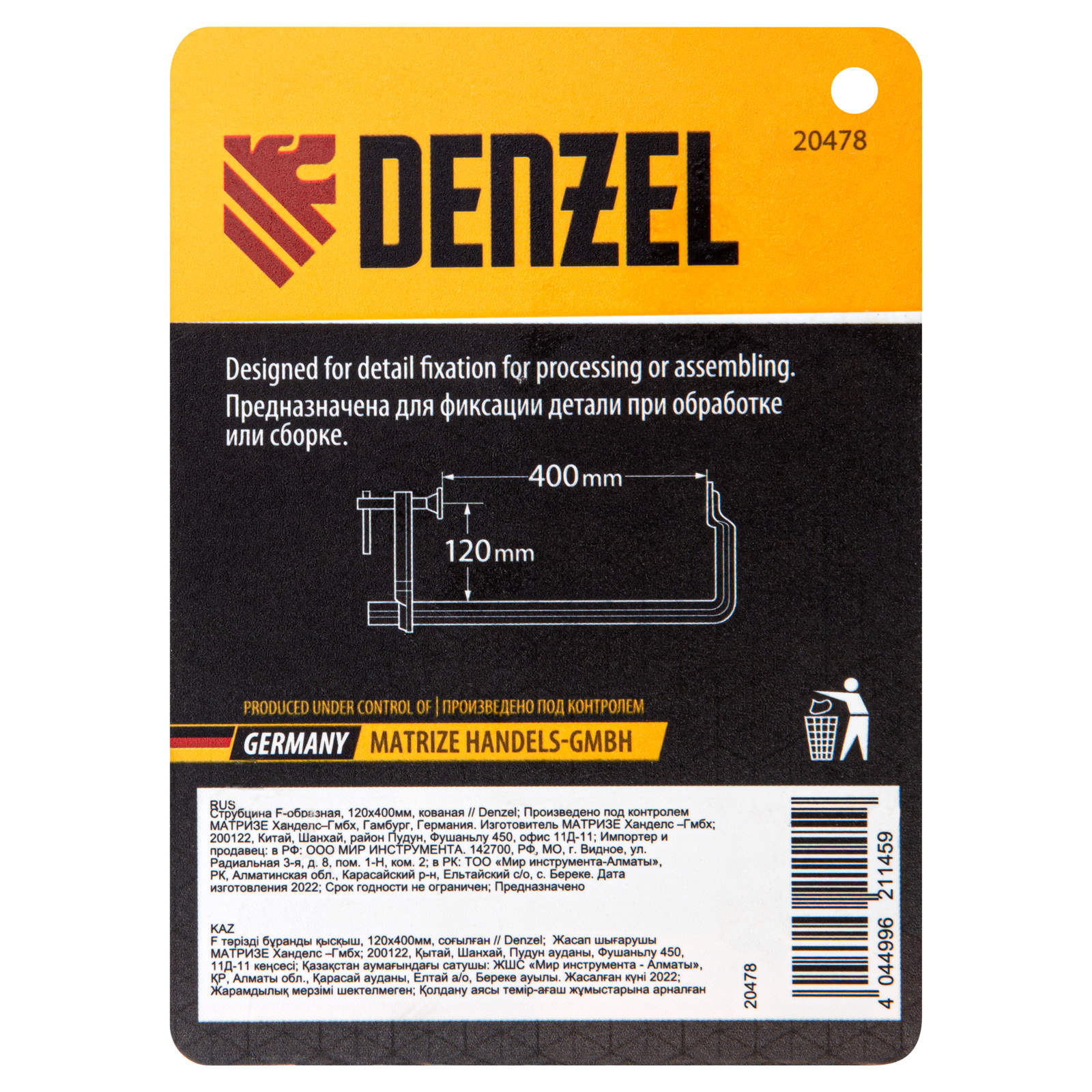 Струбцина F-образная, 120x400мм, кованая Denzel в Москве
